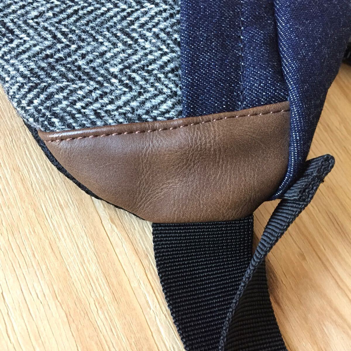 フロント部分には、両社のツイード生地を使用し、フタ部分はデニム生地を採用しています。