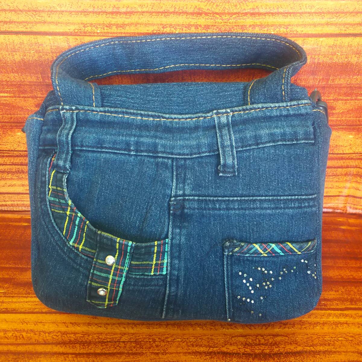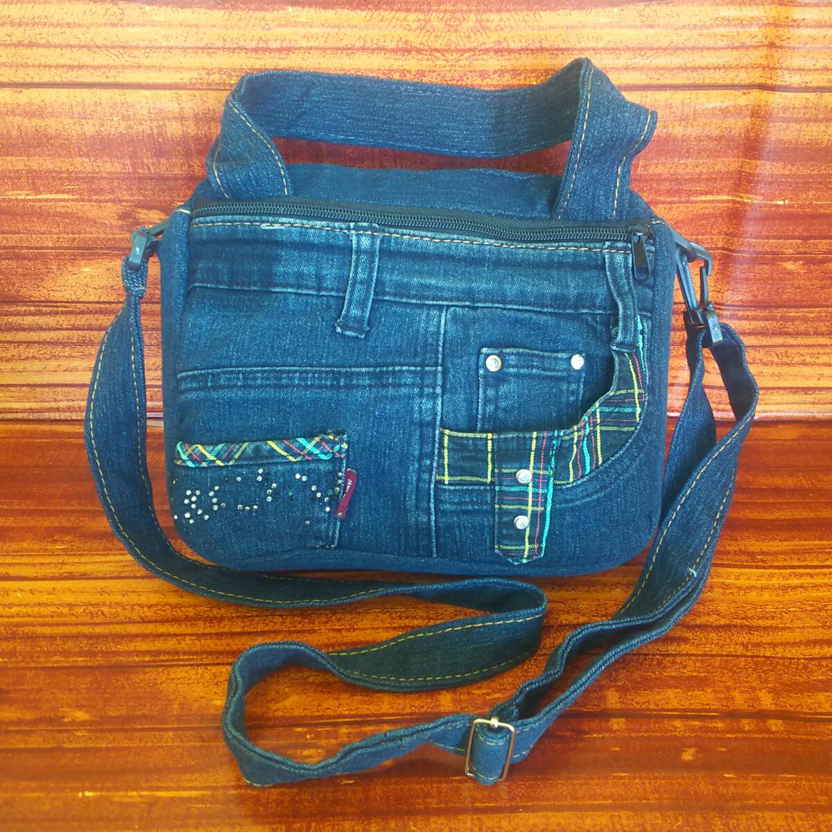 リメイクデニムバッグ ショルダーバッグ ハンドバッグ 2WAY レディース 小型 ジーンズバッグ パッチワーク ハンドメイド カジュアル 07