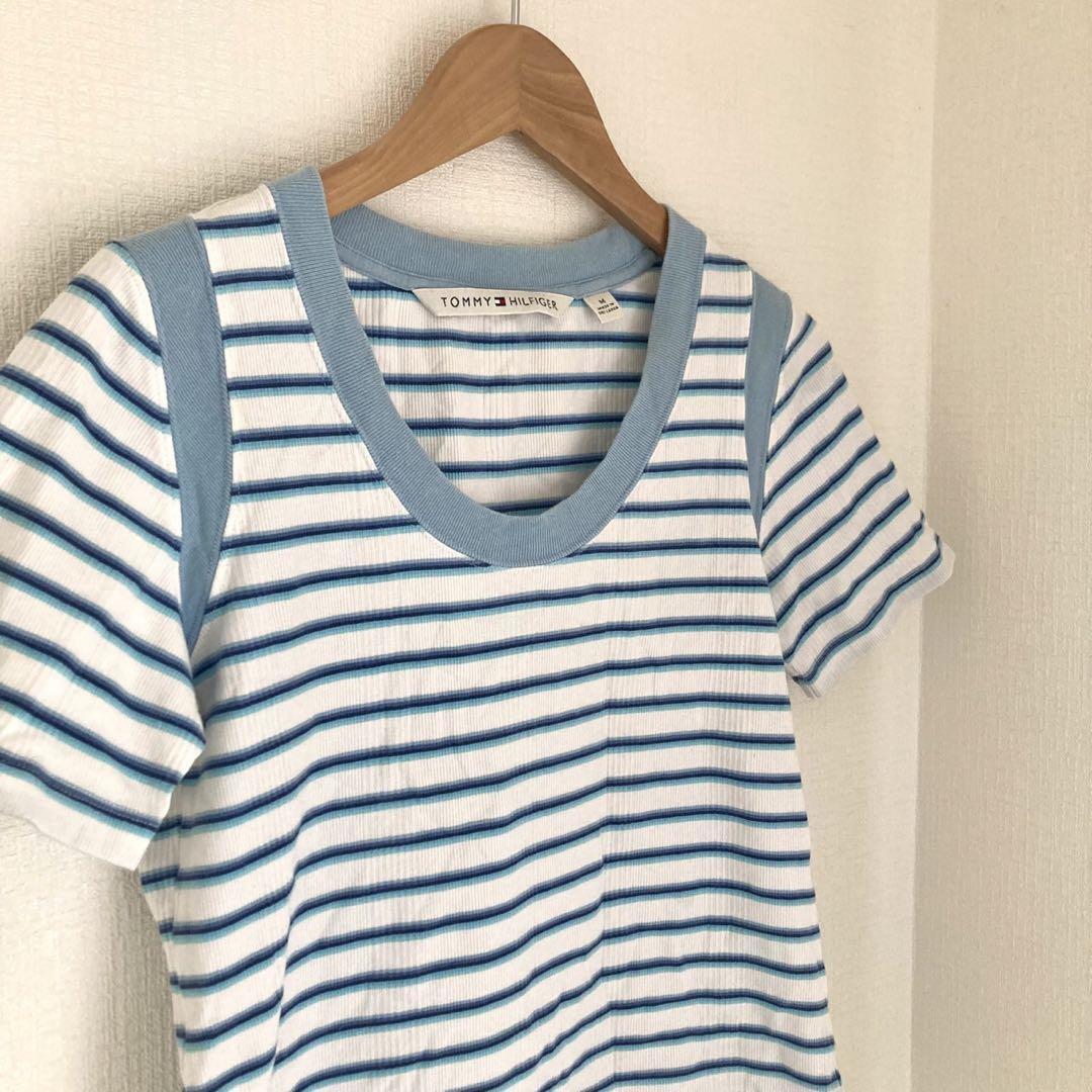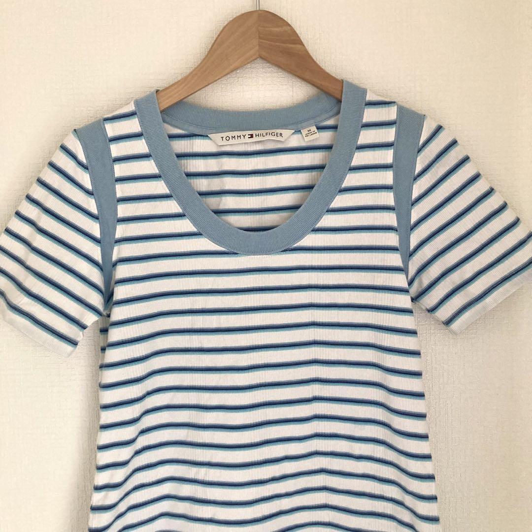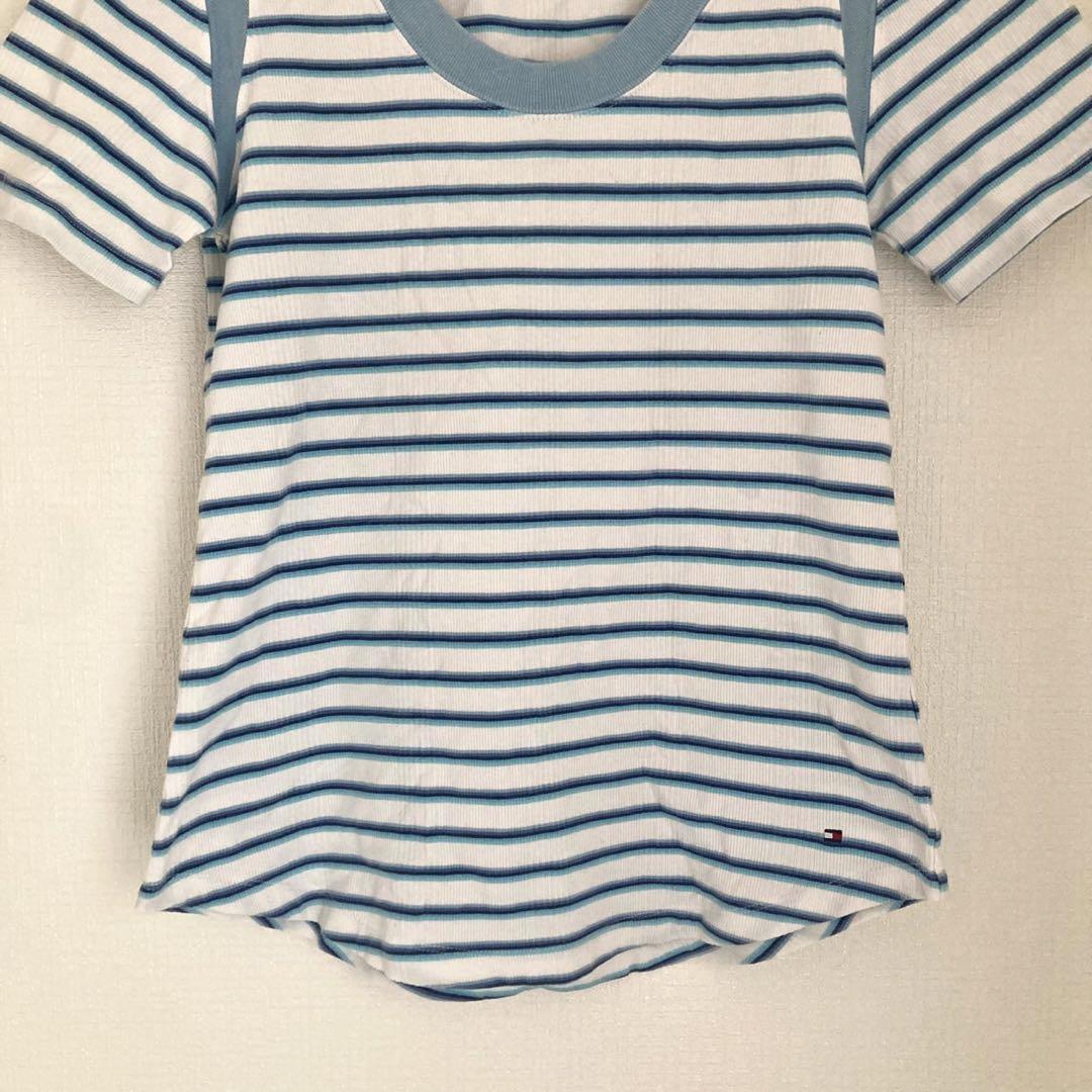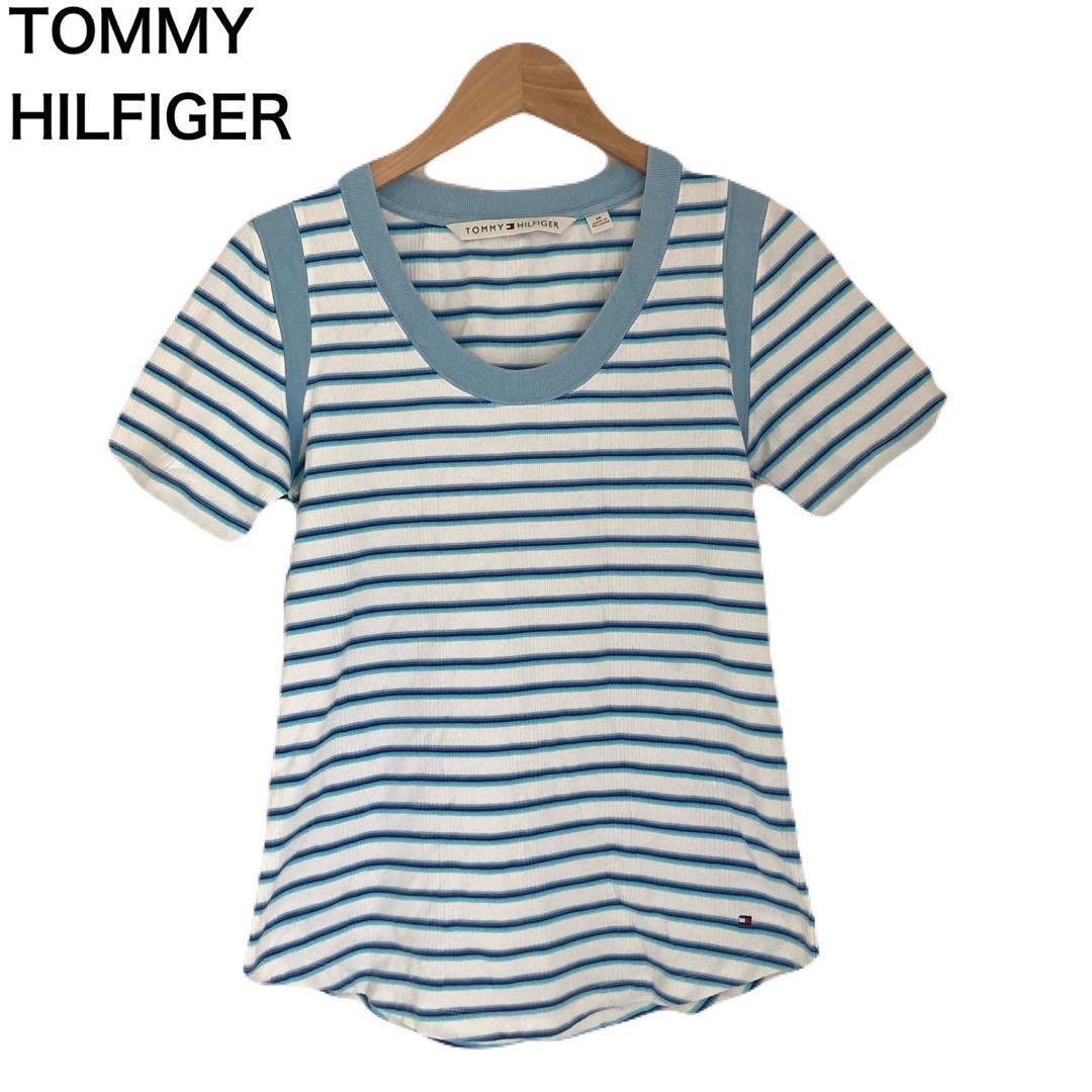 トミーヒルフィガー Tシャツ 半袖 ボーダー レディース ブルー