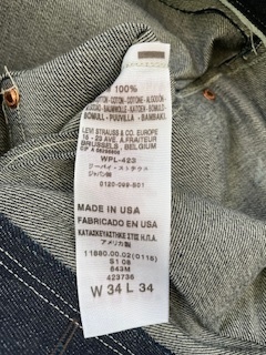 製品内側タグ表記   ウエストサイズ34インチ   レングスサイズ34インチ