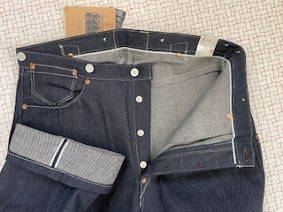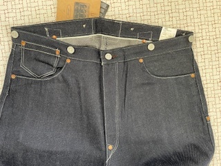 1880年復刻モデルでポケットがデニム生地になりボタンが糸付けされたタイプのリジットのデッドストックになります。