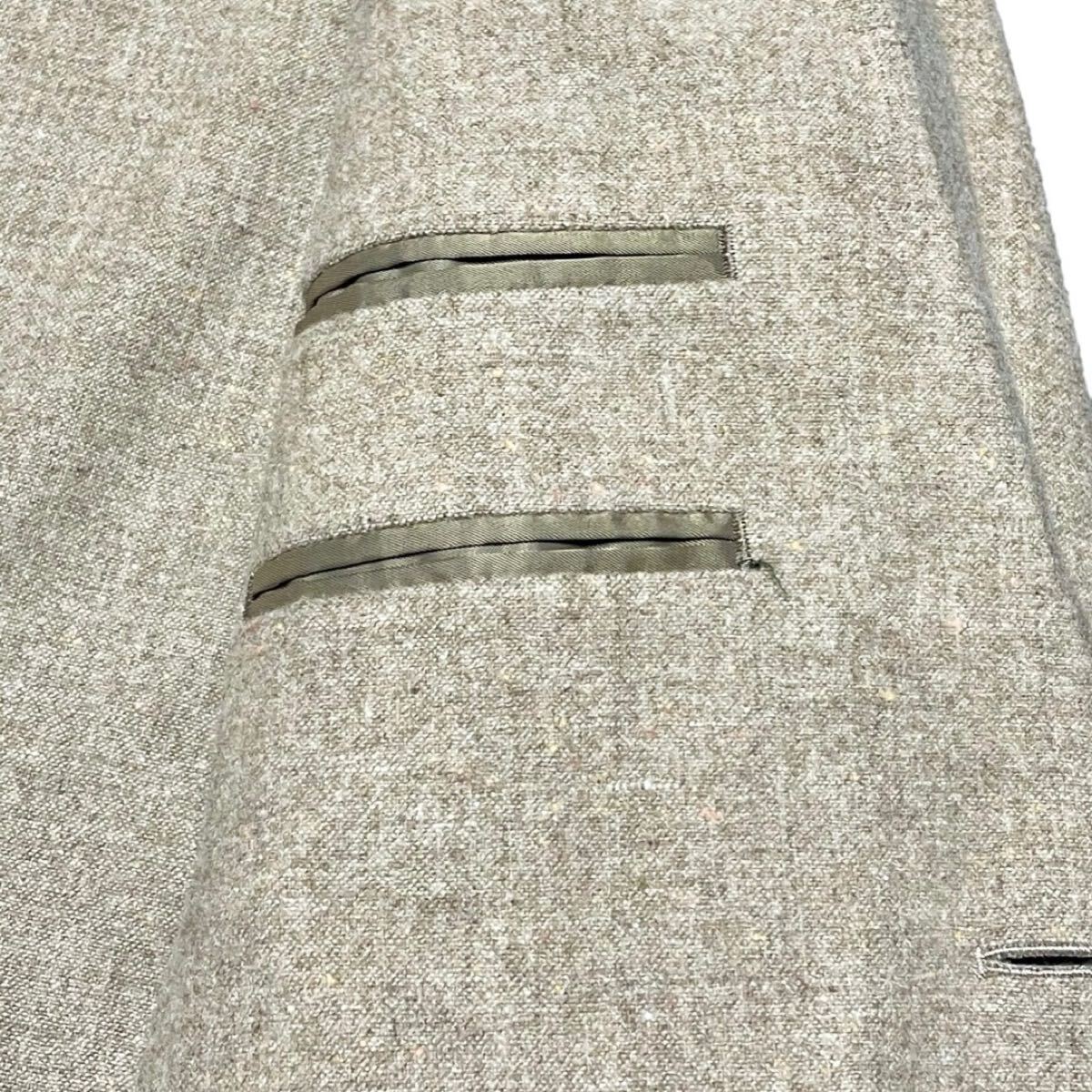 高級素材のアンゴラが混紡されたウールナイロンの生地は、ベージュ系の色がミックスされておりますので光加減などで様々な色合いに見えるおすすめの一品です。
