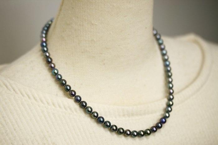 近年では作られる量が少ない ブラックカラーのアコヤ真珠ネックレスです トーンの異なるブラック系の珠が入ったマルチカラー仕立てになっております。 6.0-6.5mmのすっきりとしたサイズで組まれております。 クールなデイリースタイルを演出いたします。 | |
