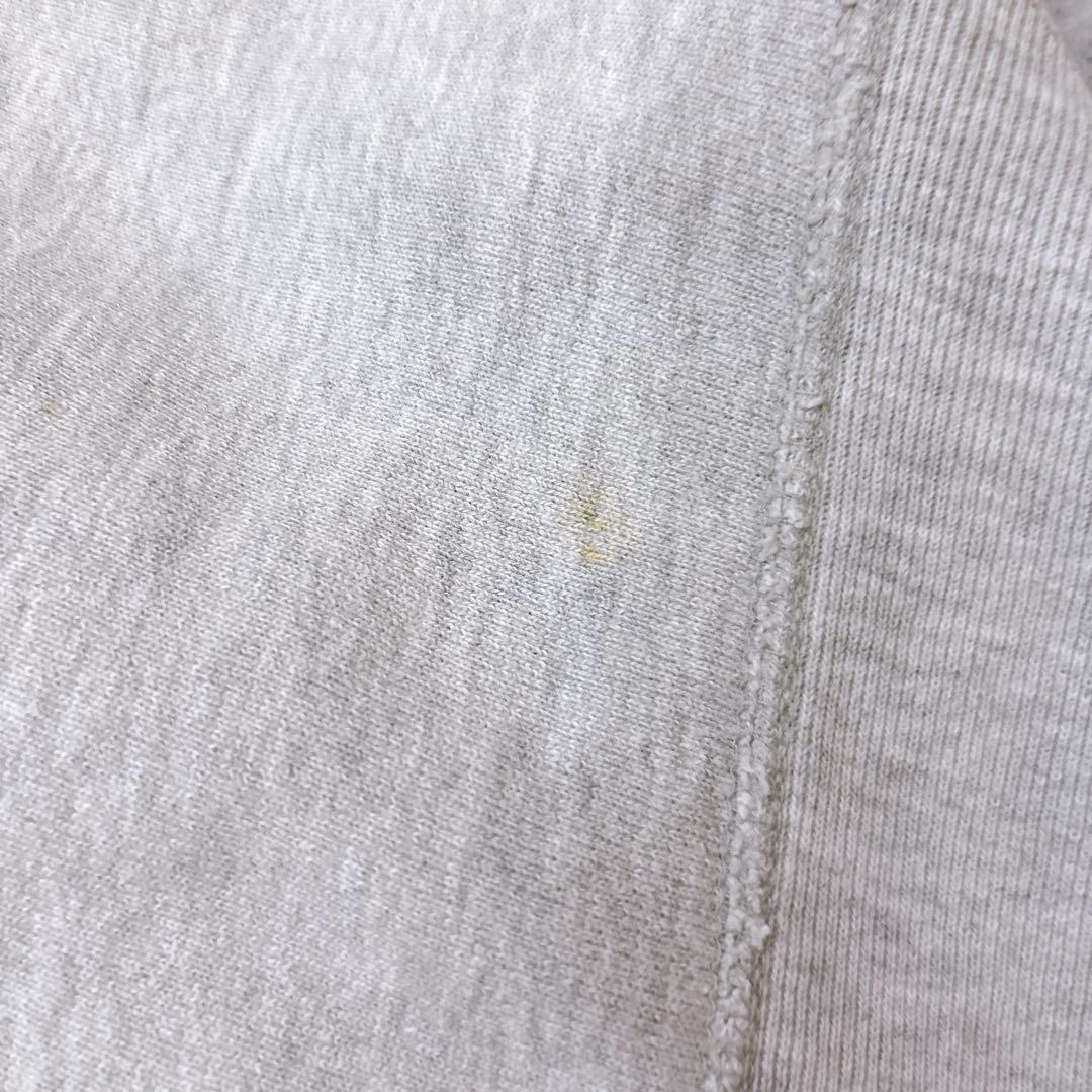 袖部分、脇部分、裾部分、リブ、内側にシミがあります。