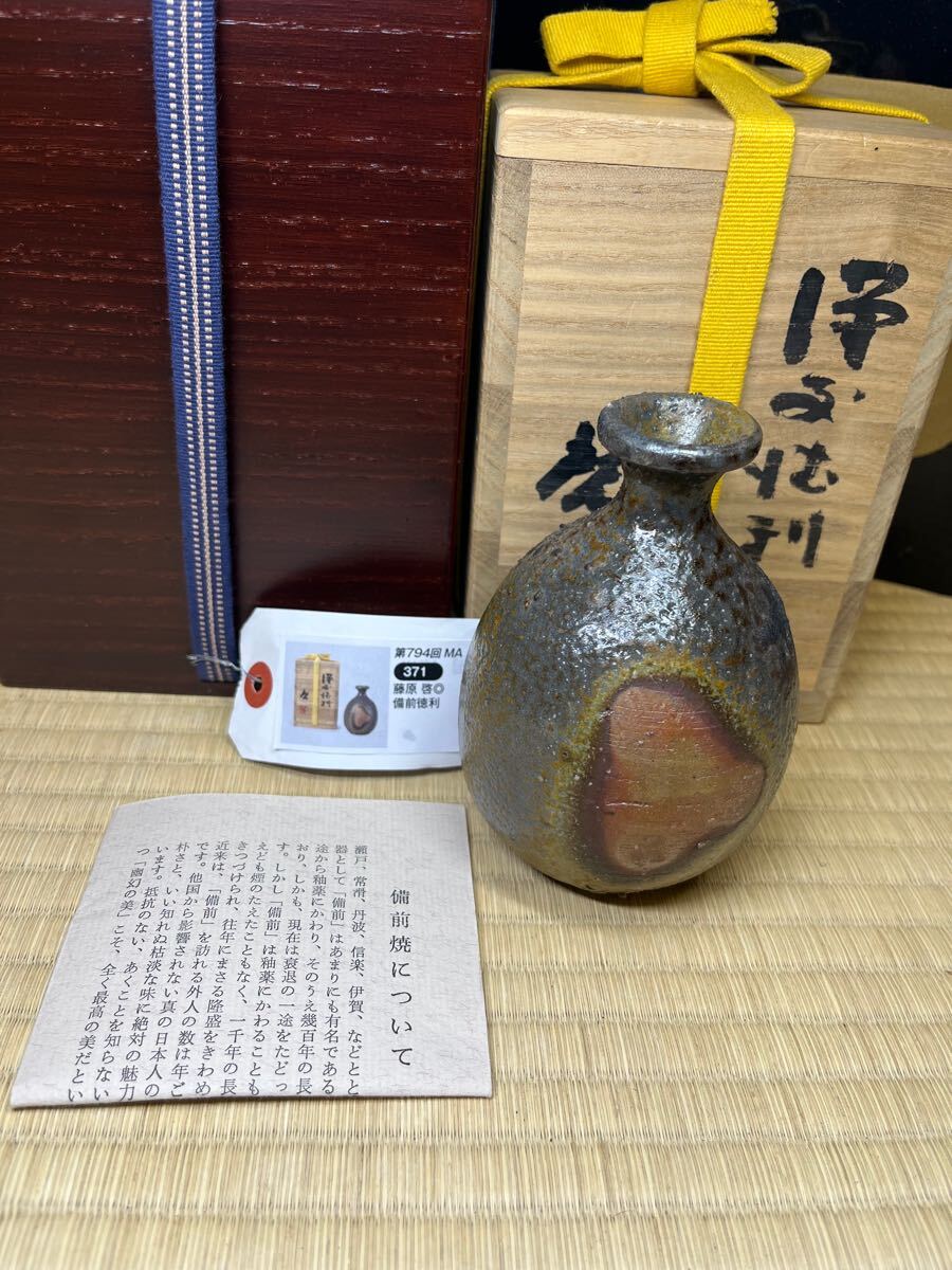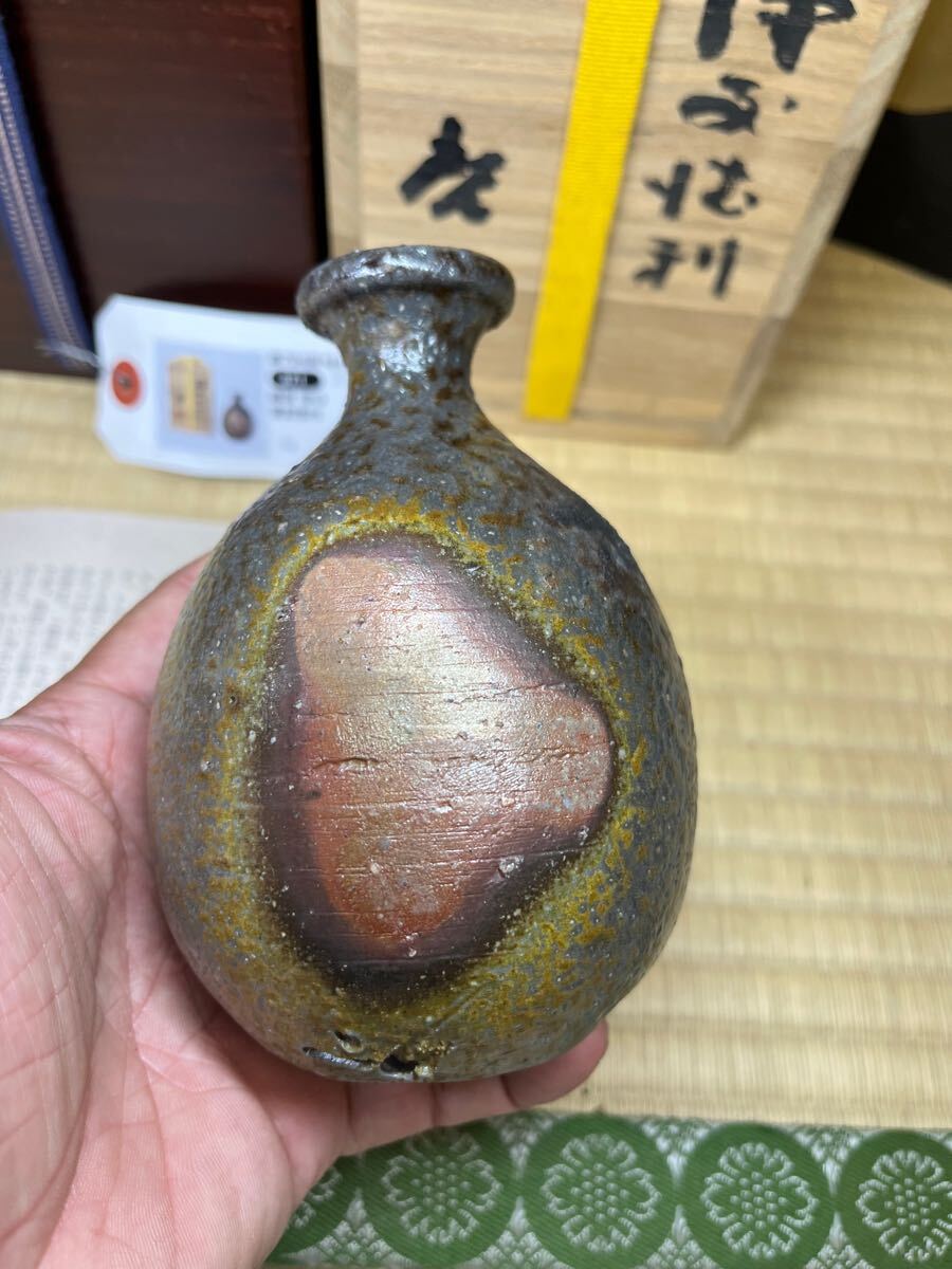 最上作 備前 人間国宝 藤原啓 窯変 赤 徳利 酒器 毎日オークション 出品作 二重箱