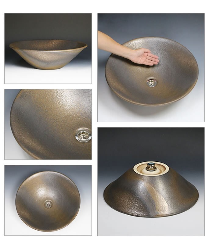 商品名 | 信楽焼 金彩ソリ型(浅)手洗い鉢(大型) |