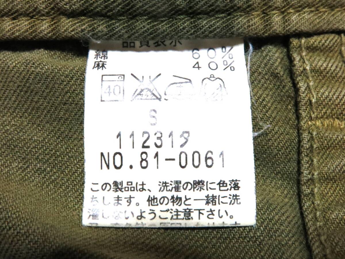 日本製 Jhonbull ジョンブル メンズカーゴパンツ 麻 Sサイズ(W実寸約76cm) ※実寸W30相当  (出品133)