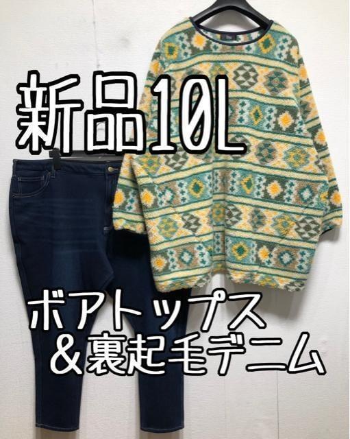 新品☆10L♪もこもこトップス&裏起毛やわらかデニム♪あったかセット☆z463