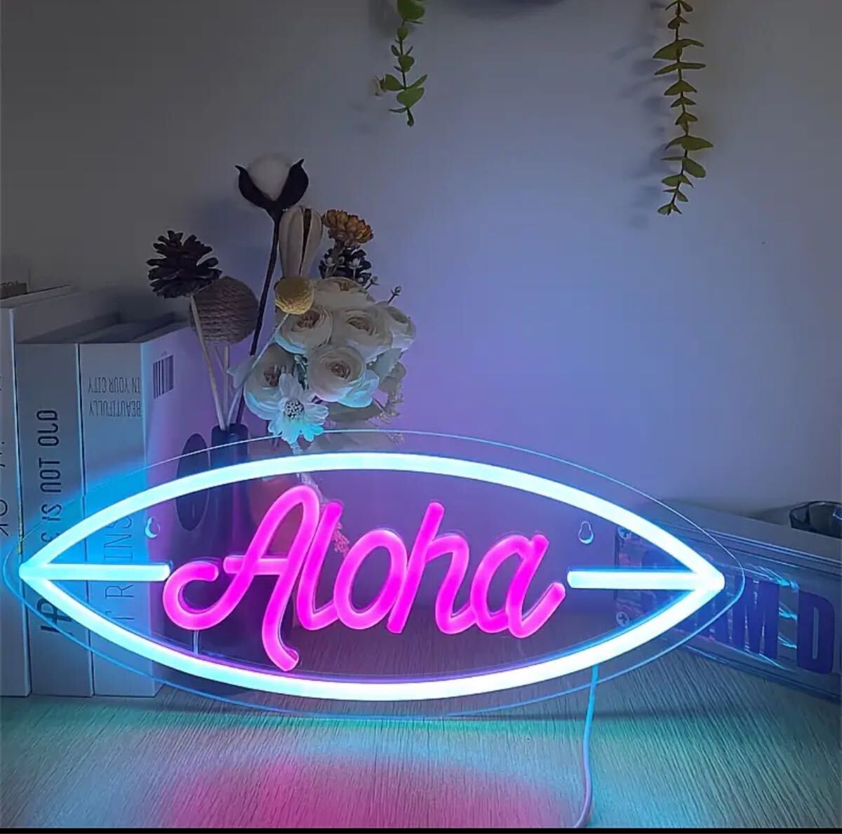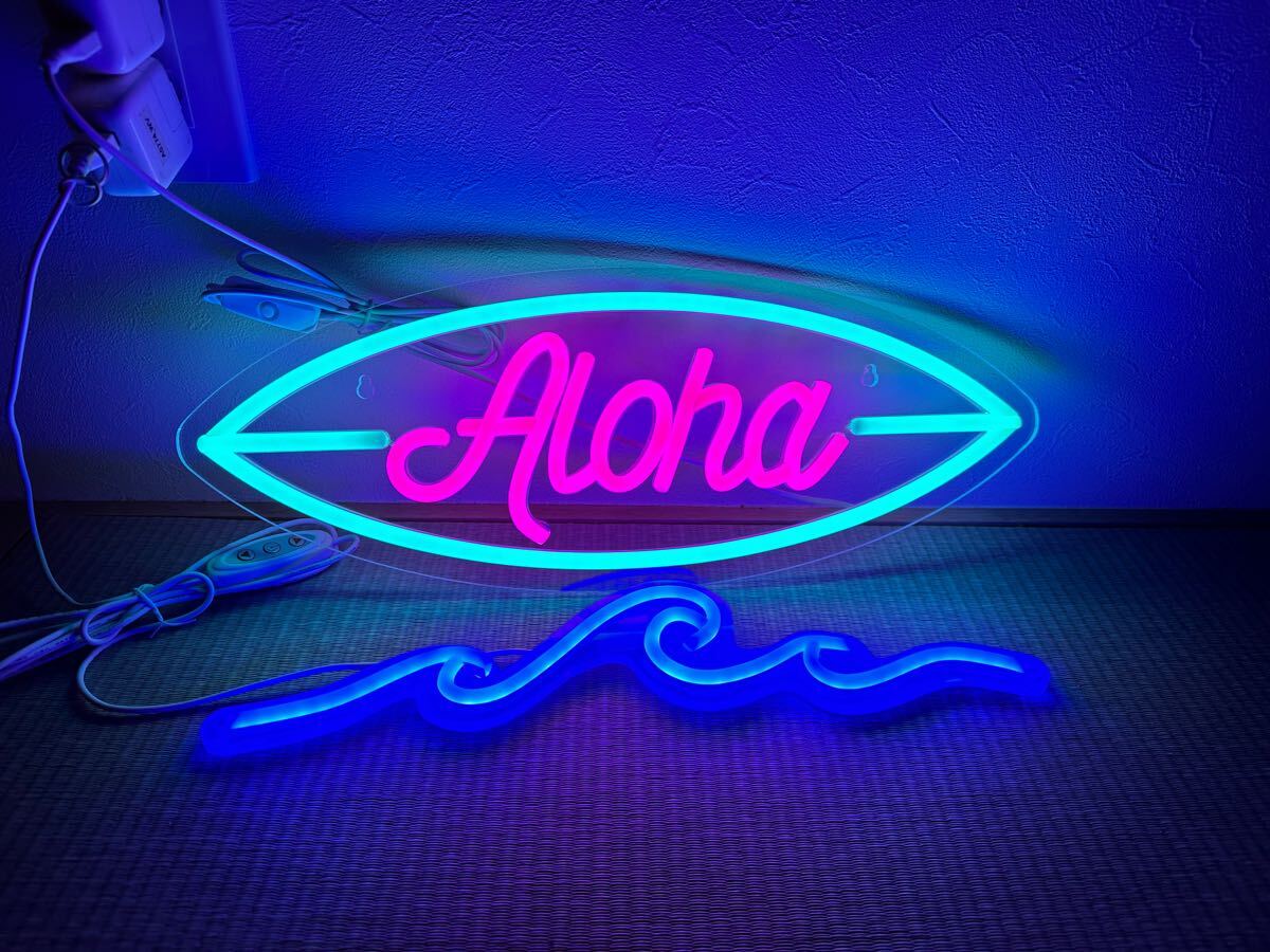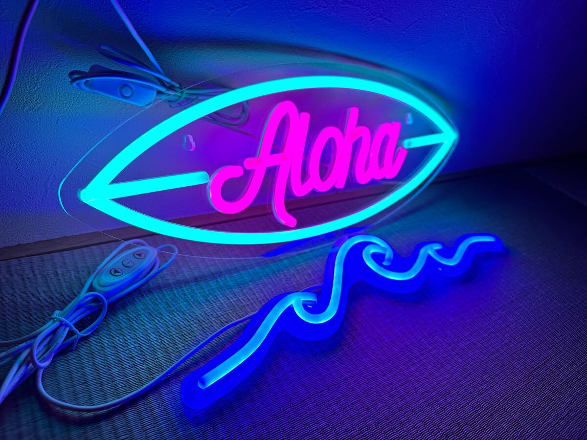 上のalohaネオンサインと下の波ネオンサインの2つセットになります。