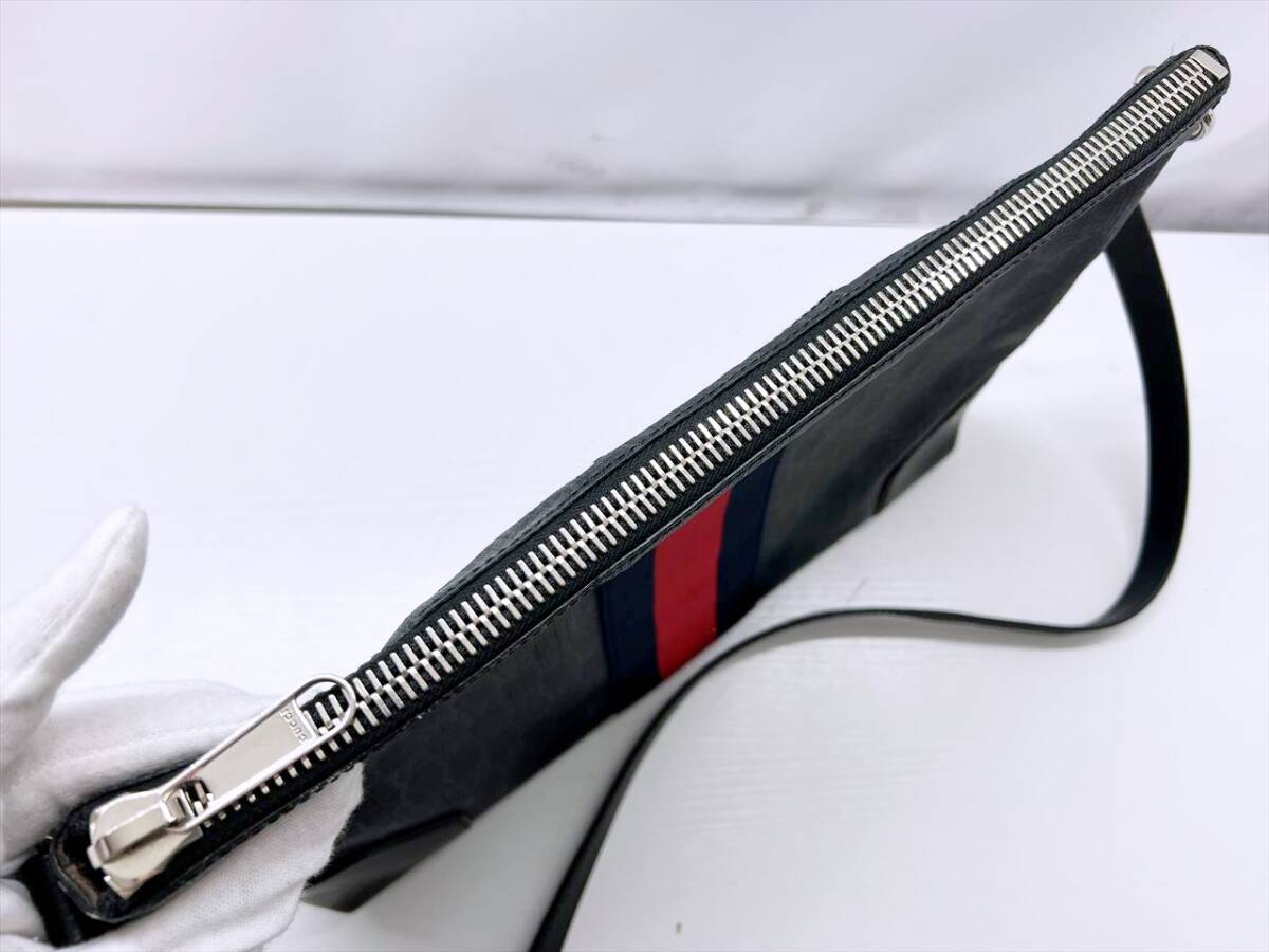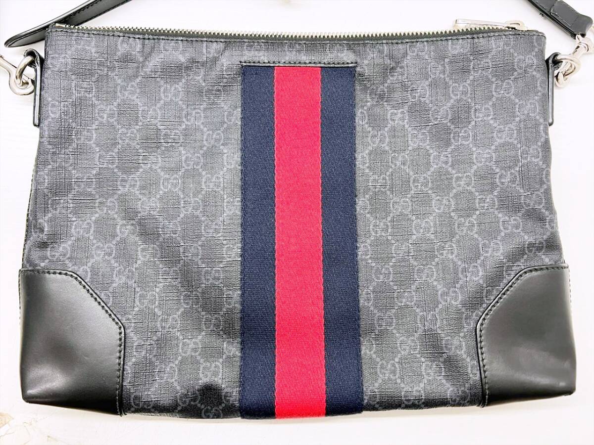 良好品 GUCCI グッチ GGスプリーム PVC ショルダーバッグ ウェブ グレー レッド 474139
