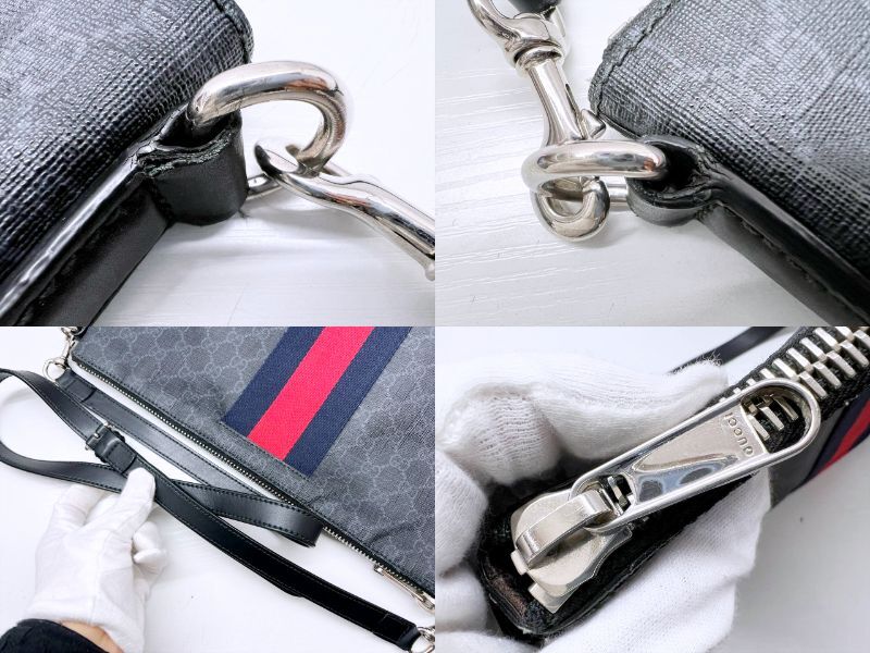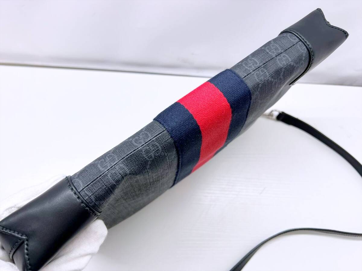 良好品 GUCCI GGスプリーム PVC ショルダーバッグ ウェブ グレー レッド 474139