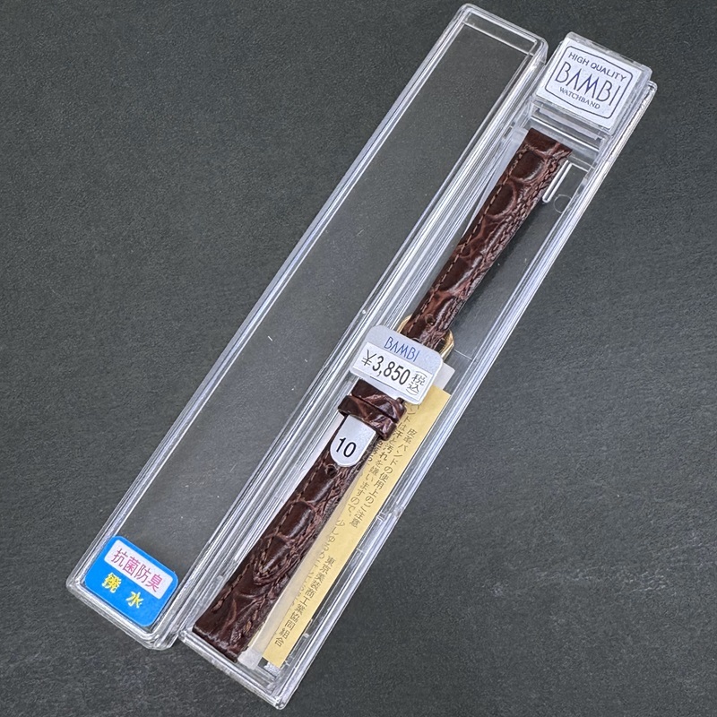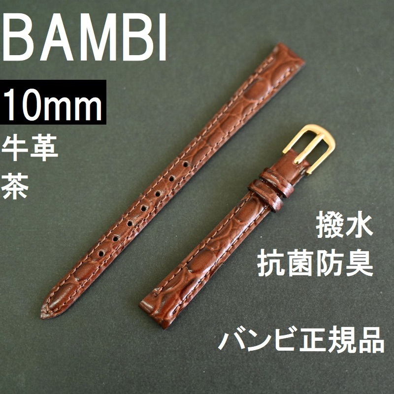 バネ棒付 送料無料★特価 新品★BAMBI 時計ベルト 10mm 牛革バンド 型押し 茶色 ブラウン 茶 抗菌防臭 撥水★バンビ 定価税込3,850円