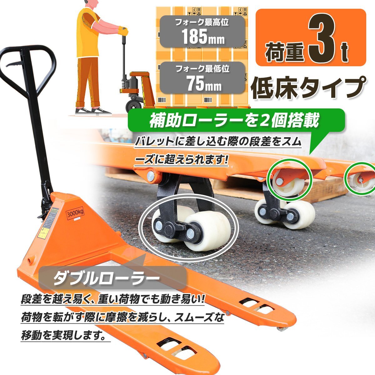 ●新品! ハンドリフト 3000kg(3トン) ワイドハンドパレットトラック 3t 幅550mm フォークリフト【営業店止め】