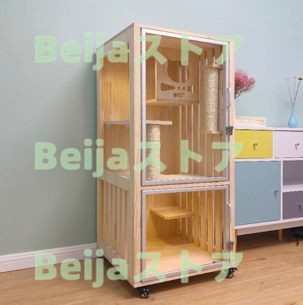 猫の別荘 実木猫のハウス/猫棚/猫ケージ/豪華、猫のクライミング棚
