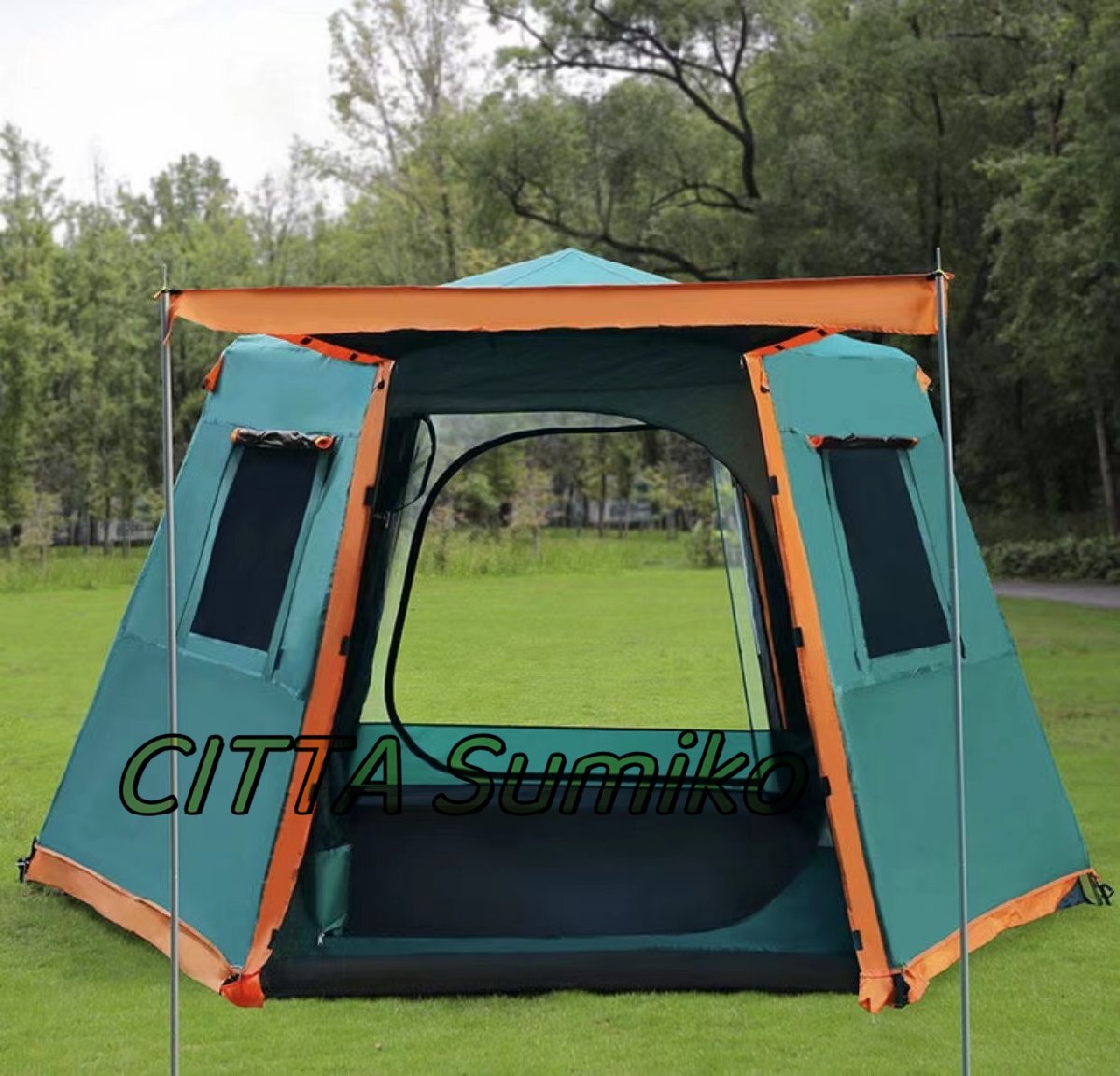 ●状態:新品未使用 ●展開サイズ:5~8人用約368*368*200CM ●収納サイズ:5~8人用約99x18CM ●重量:5~8人用約8.8KG ●素材:撥水厚オックスフォード生地+メッシュ ●セット内容:テント本体、ペグ、固定用紐、収納袋、ポール×2