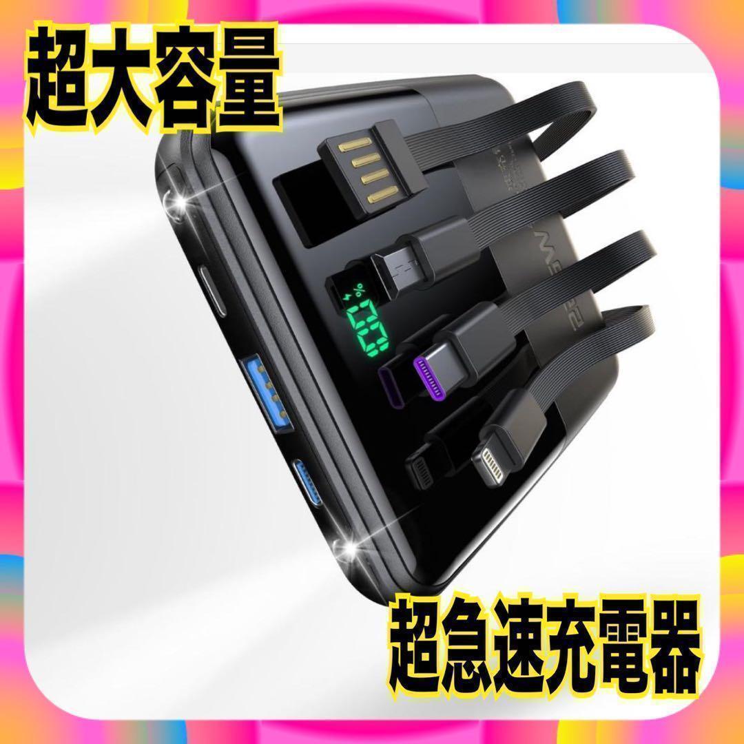 モバイルバッテリー 軽量 小型 4ケーブル内蔵型・5台同時充電・22.5W急速
