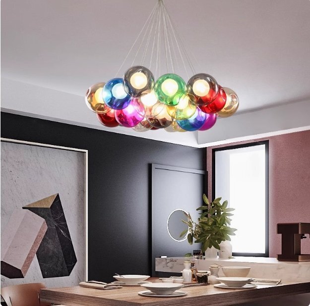 シャンデリア 照明 透明 ガラスボール ペンダントライト LED電球対応 シャンデリア LEDランプ 19灯 12畳 16畳