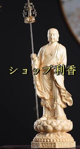 木彫り仏像【地蔵菩薩立像】木製 安産祈願 子育ての守護尊 仏間 仏壇 木彫り ぶつぞう (桧木製-高さ30cm)