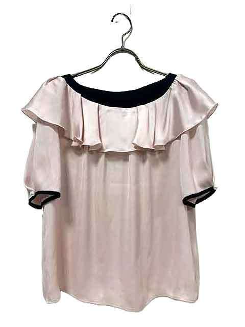 こちらは未使用品です。ジョーゼット生地の上品ながら華やかめなブラウスです。