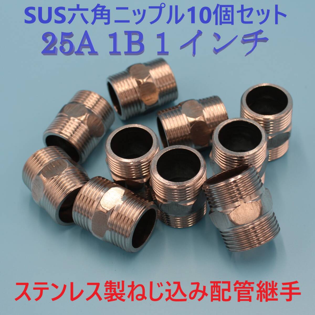 SUS六角ニップル25A 1B 1インチ10個セット ステンレス製ねじ込み配管継手