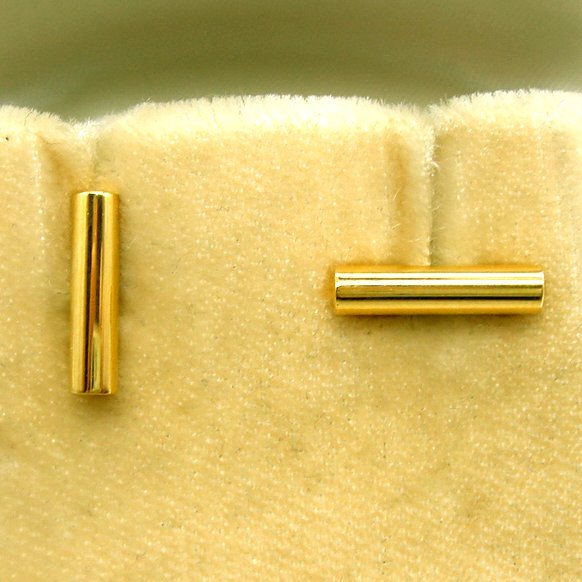 直径約3mm、長さ約12mmの円柱はピアスポストが真ん中にあるので色々な向きを向きますが、どこを向いても可愛らしいです。
