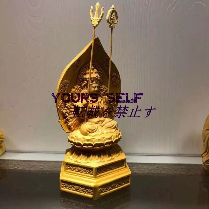 珍品 木彫り 仏像 千手観音 千手観音菩薩 千手観音像 観音菩薩 座像 彫刻 一刀彫 天然木檜材 福徳