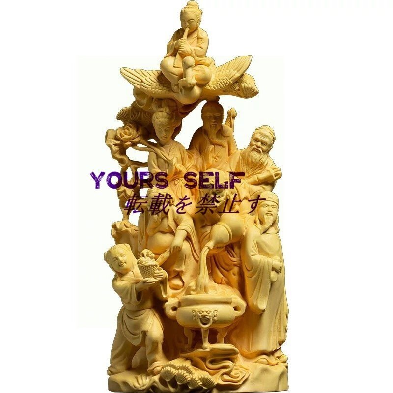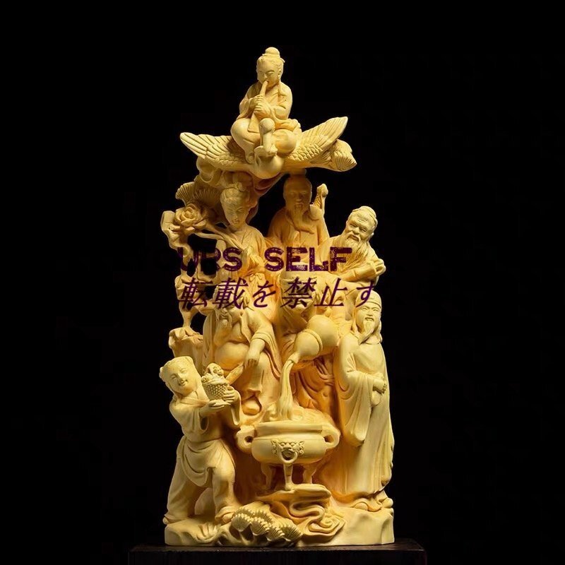 木彫仏像 置物 八仙過海 柘植木彫り 樹木の上八仙過海 天然ツゲ 彫工芸品 財運 金運祈願 高さ19cm 木彫置物 ギフト用 飾り物