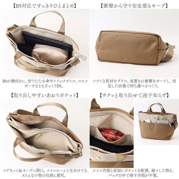 商品説明 | ・・【お仕事と家事を頑張る女性に】 ・デイリーに活躍◎「Legato Largo 撥水両立バッグ ハンドル付ショルダー」。 ・【ラクチンなのにキレイを両立】 ・身軽にお出かけできてストレスフリー。ゴールドの金具使いで、ラフすぎない大人な仕上がりに。 ・【お好みに合わせてスタイルチェンジ】 ・手持ちで♪長さ調節可能なショルダーを使って、肩掛けや斜め掛けも自在な2WAY! ・【整理整頓しやすい3スペース仕様】 ・メインルームの他、前後にあおりポケットを装備した3層構造。荷物を定位置に収めやすい◎ ・【開閉スムーズ、安心の天ファスナー】 ・メインはガバっと開く天ファスナー式。ファスナーを閉じれば中身の飛び出しをガード。 ・【B5対応ですっきりひとまとめ】 ・B5が横向きに、折りたたみ傘やドリンクボトル、コスメポーチなどもざっくりIN。 ・【衝撃から守り安定感もキープ】 ・ソフトな底材をプラス。直置きの衝撃をガードし、安定した状態で持ち運べるつくり。 ・【取り出しやすいあおりポケット】 ・マグネット&オープン開口。メインルームと仕分けでき、スリムな小物の収納に便利。 ・【サクッと取り出せて迷子知らず】 ・メイン内側と前面にポケットを配置。細々した物も、バッグの中で探す手間が不要。 ・【晴れの日も雨の日も頼れる相棒】 ・汚れや水滴を弾きやすい、撥水加工を施した素材。お手入れも拭き取るだけ。 ・(※)完全防水ではありません。 ・【コーデに馴染む落ち着いたカラー】 ・どんなスタイルにも合わせやすい、ワンカラーやバイカラー。シンプルで使い勝手抜群☆ ・【ポケット仕様】 ・メインルーム:オープンポケット×1 ・メインルーム前側:マグネット式あおりポケット×1 ・メインルーム背面側:オープン式あおりポケット×1 ・前面:オープンポケット×1 |
