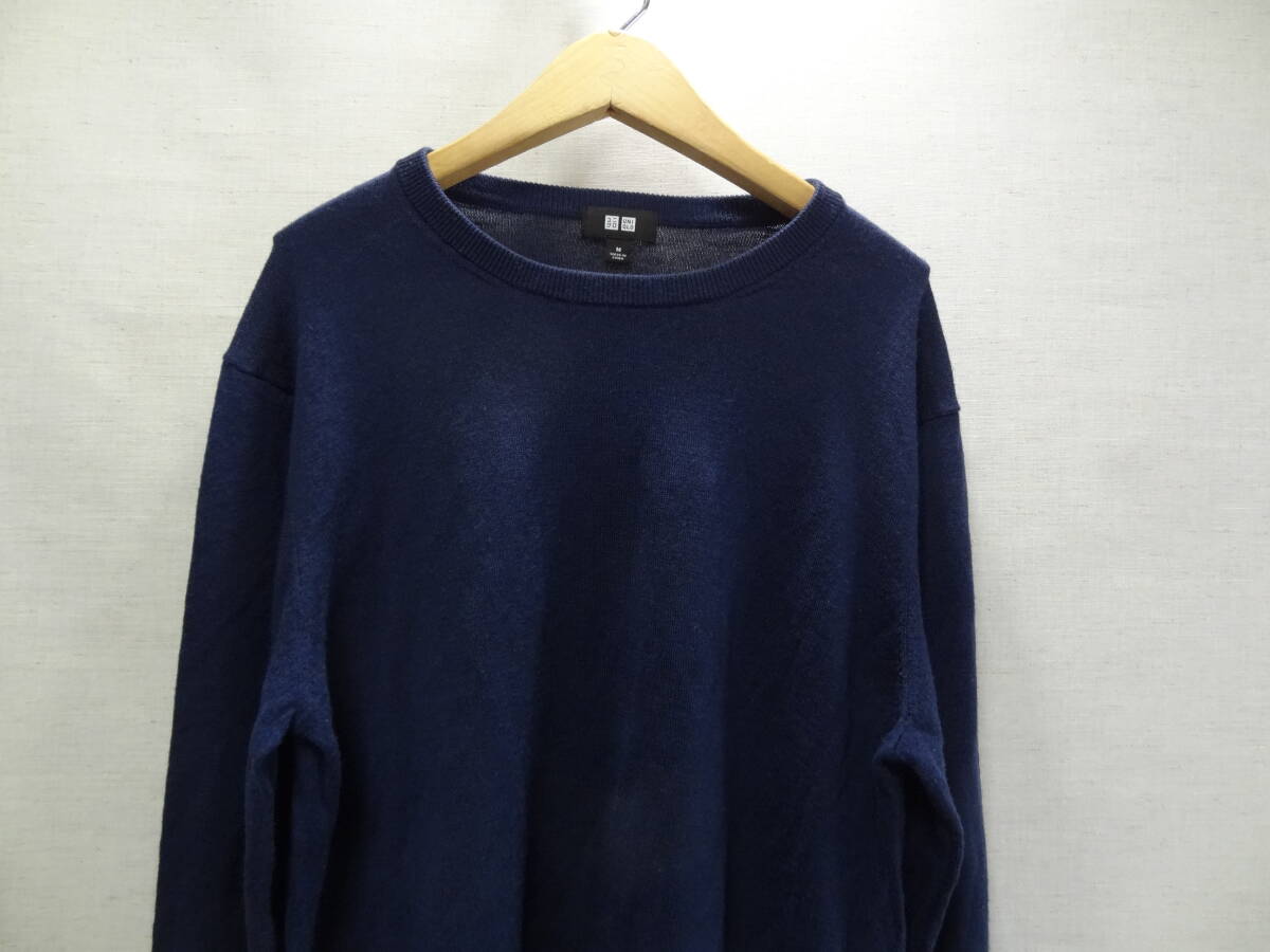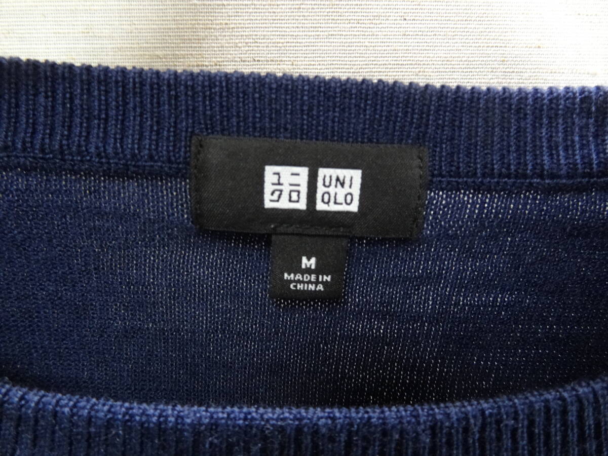 全国送料無料 ユニクロ UNIQLO メンズ PURE NEW WOOL 100%素材 紺ネイビー色 クルーネックハイゲージ ニット セーター Mサイズ