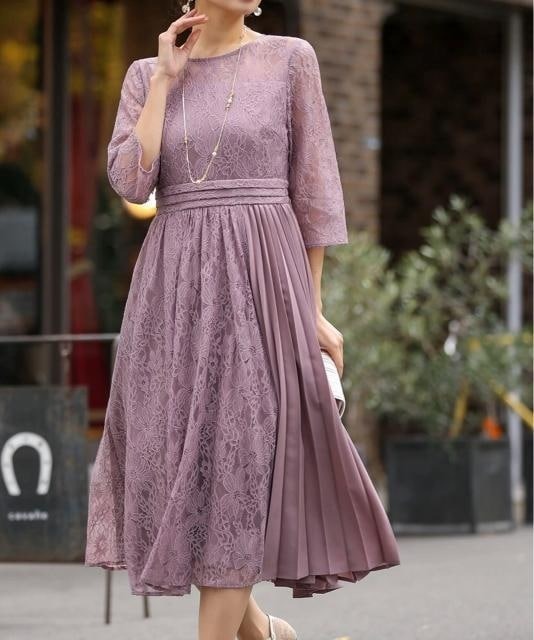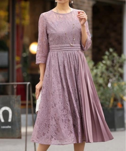 新品☆5L♪ピンク系♪レース&プリーツ上品ワンピースドレス♪2.1万円相当☆z621