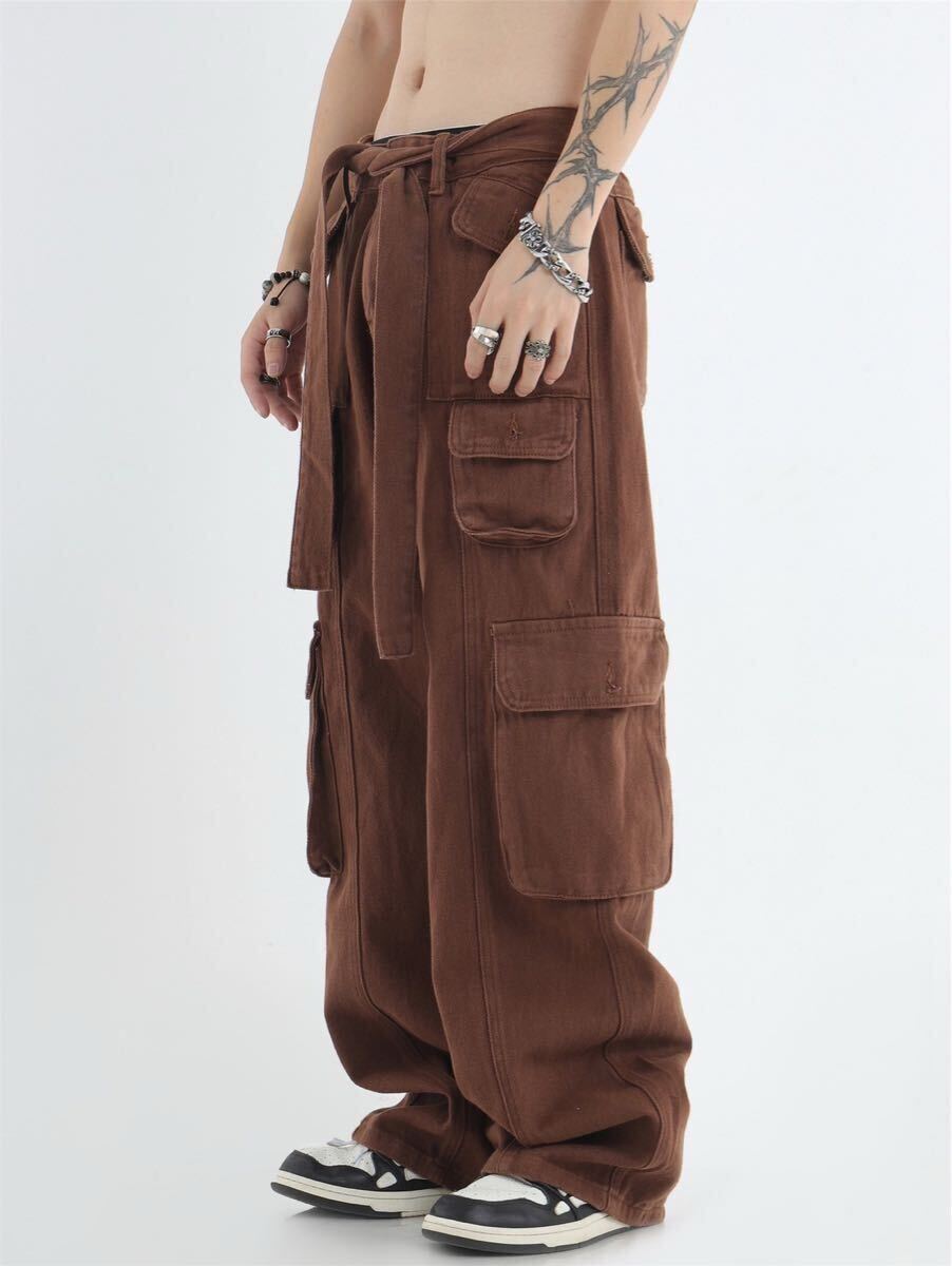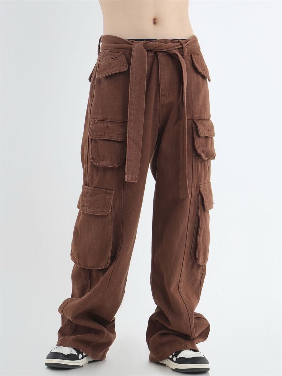 デニム ワイドレッグ ジーンズ ワイドパンツ ワイドデニム ルーズパンツ ボトムス パンツ メンズ レディース ベルト付き