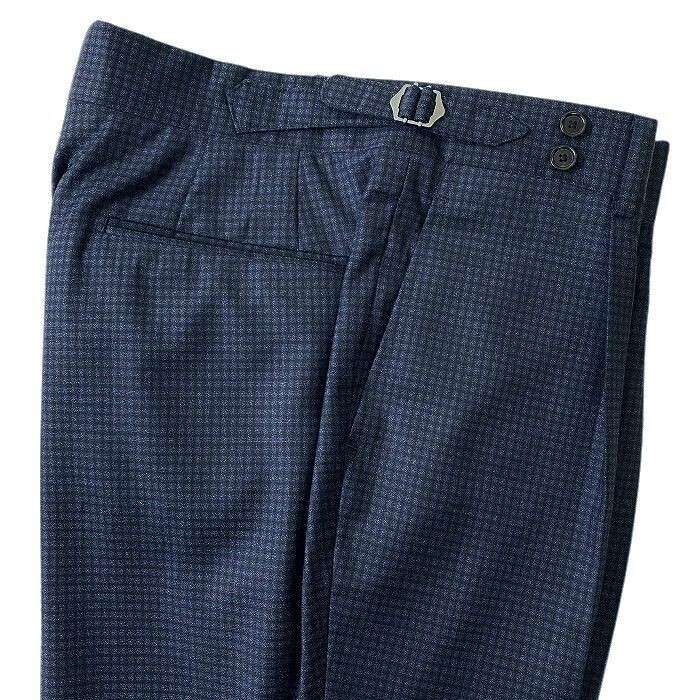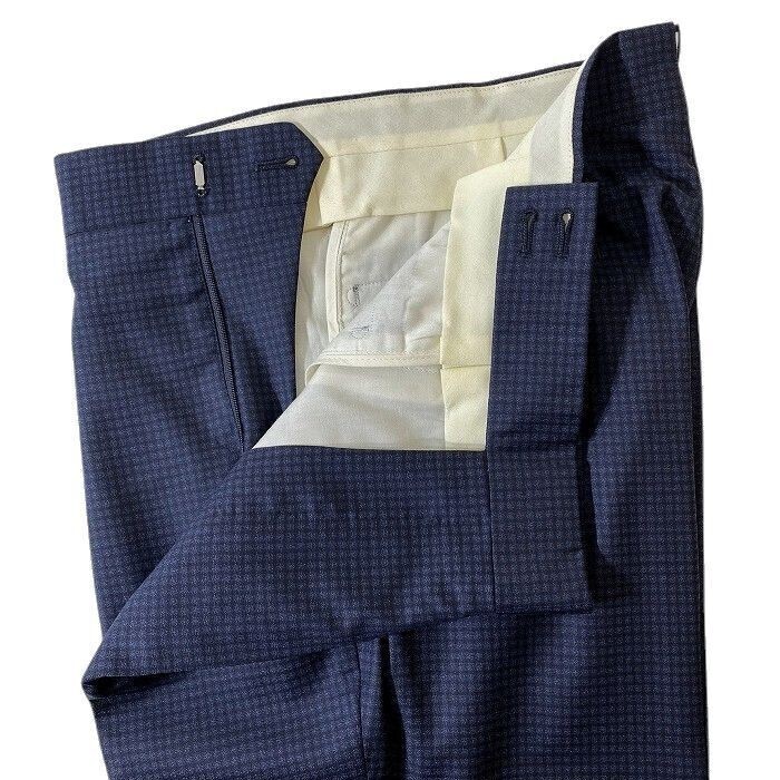 ジャケット:2Bシングル・総裏地・サイドベンツ・本切羽・内ポケット×4・外ポケット×3 パンツ:ジップフライ・ワンタック・裾未処理・4ポケット・ウエスト3cm出し可能 |