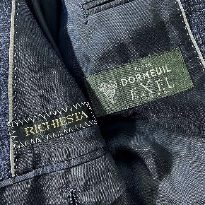 RICHIESTA リキエスタ 新品 定価17万 日本製 英国製高級生地 DORMEUIL社 EXEL 高機能ストレッチウール ミニチェック柄 2B ジャケット パンツ シングルスーツ 187A8830 A6 ▲074▼41211w03 | |||