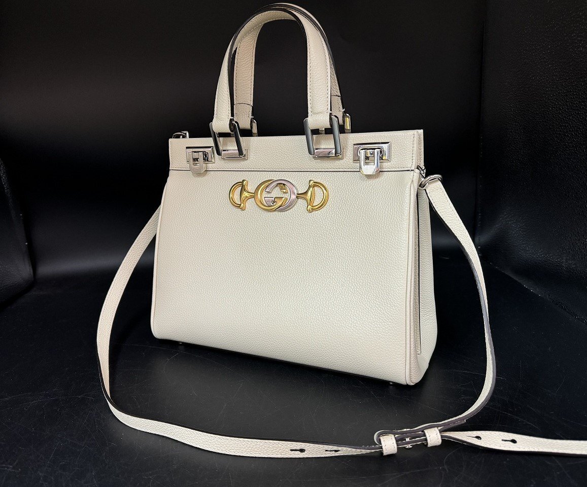 〓 【GUCCI グッチ ズゥミ 2way ハンド ショルダー バッグ 569712 レザー ホワイト レディース 人気シリーズ】HO10354