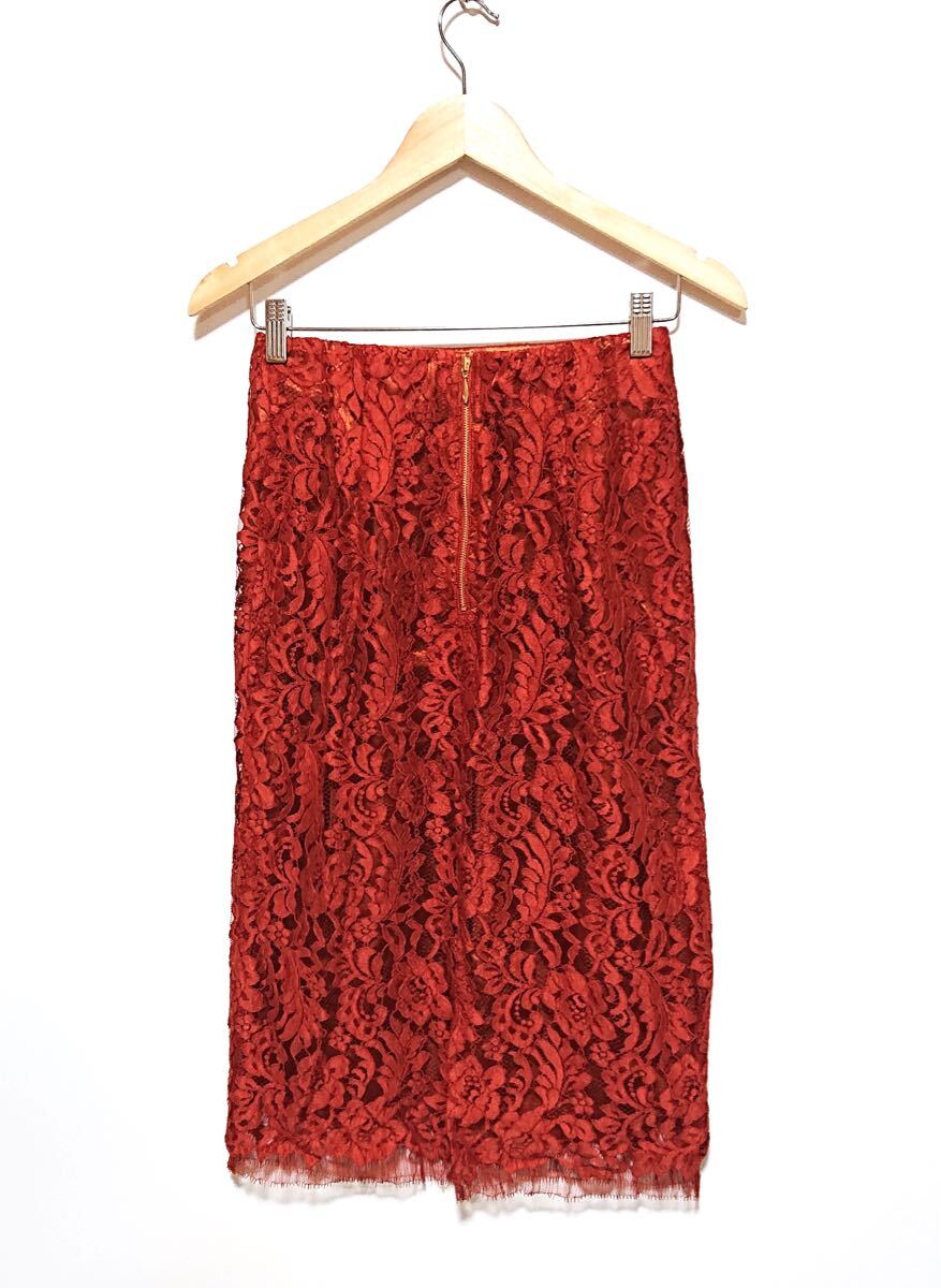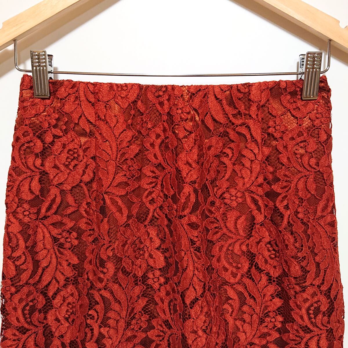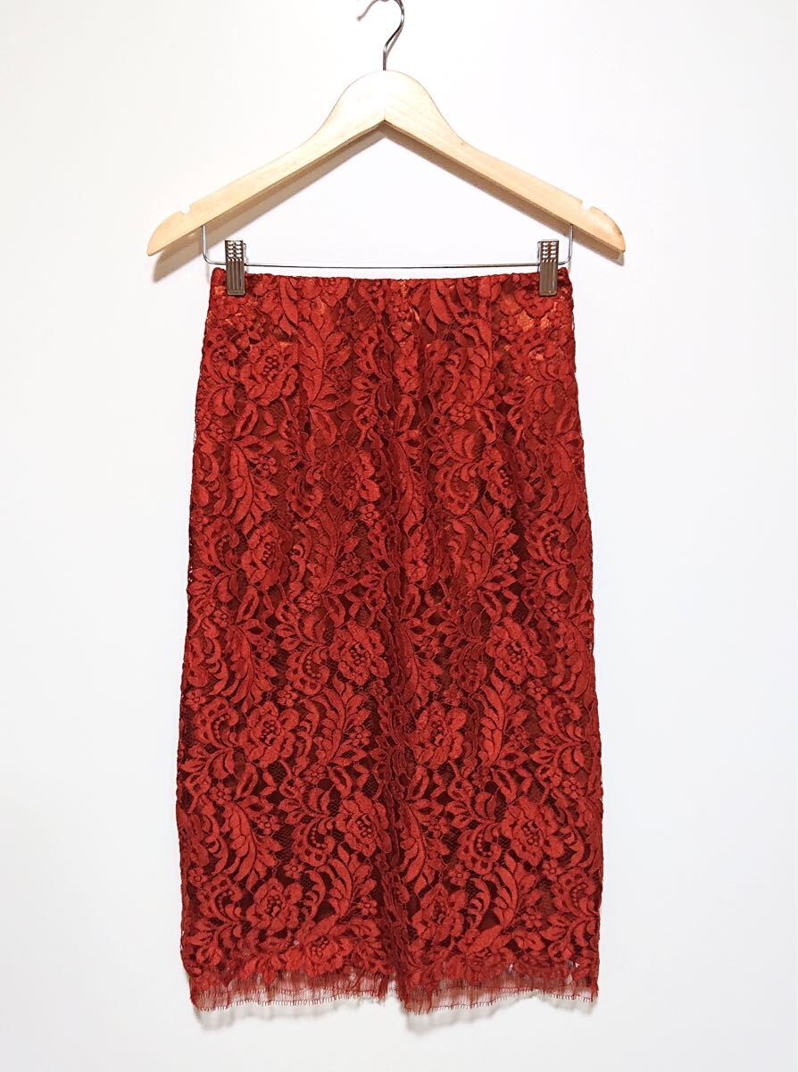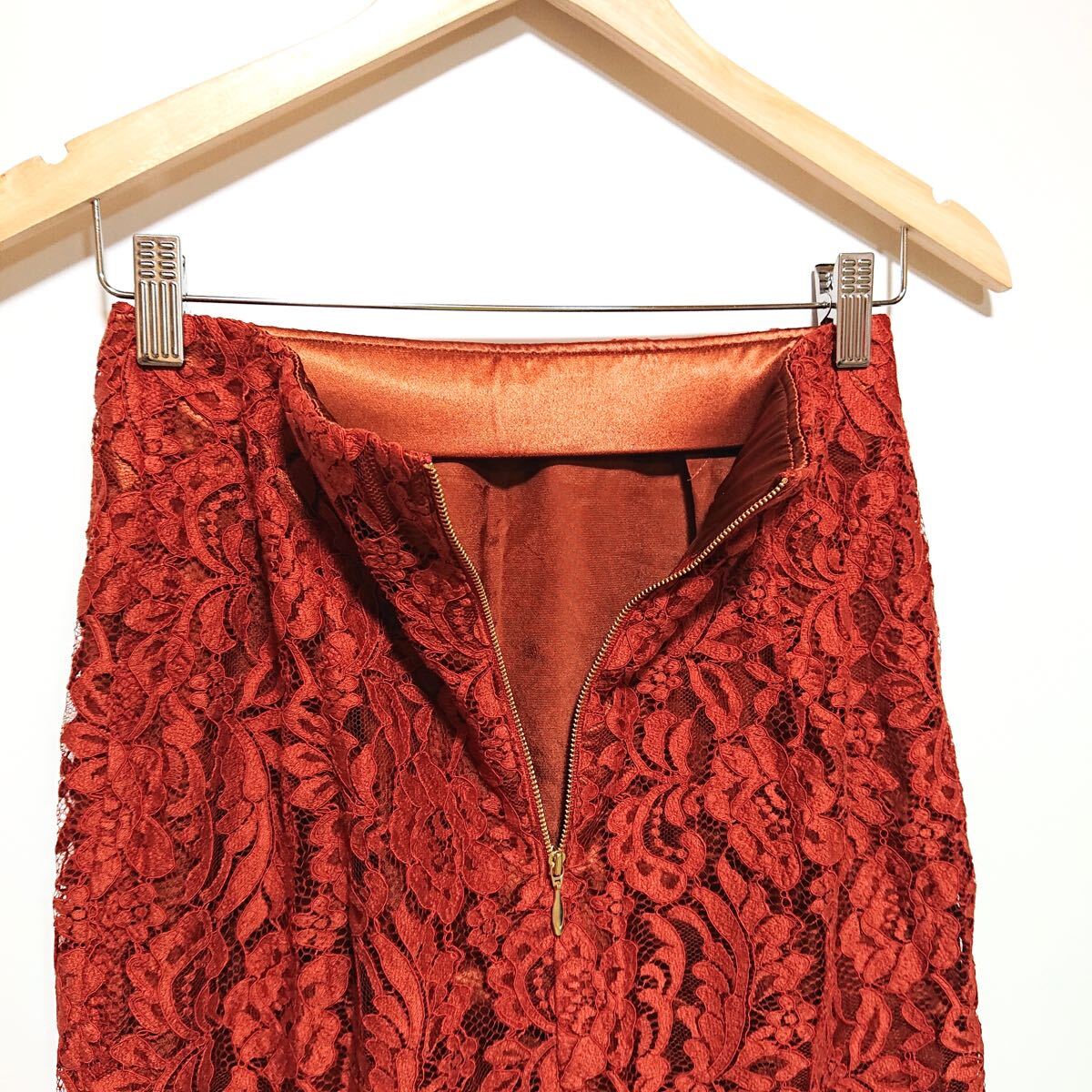 h1431gg タグ付き未使用品 日本製 NOLLEY’S(ノーリーズ)サイズ38(M位) スカート オレンジ レディース レーススカート 上品 タイト