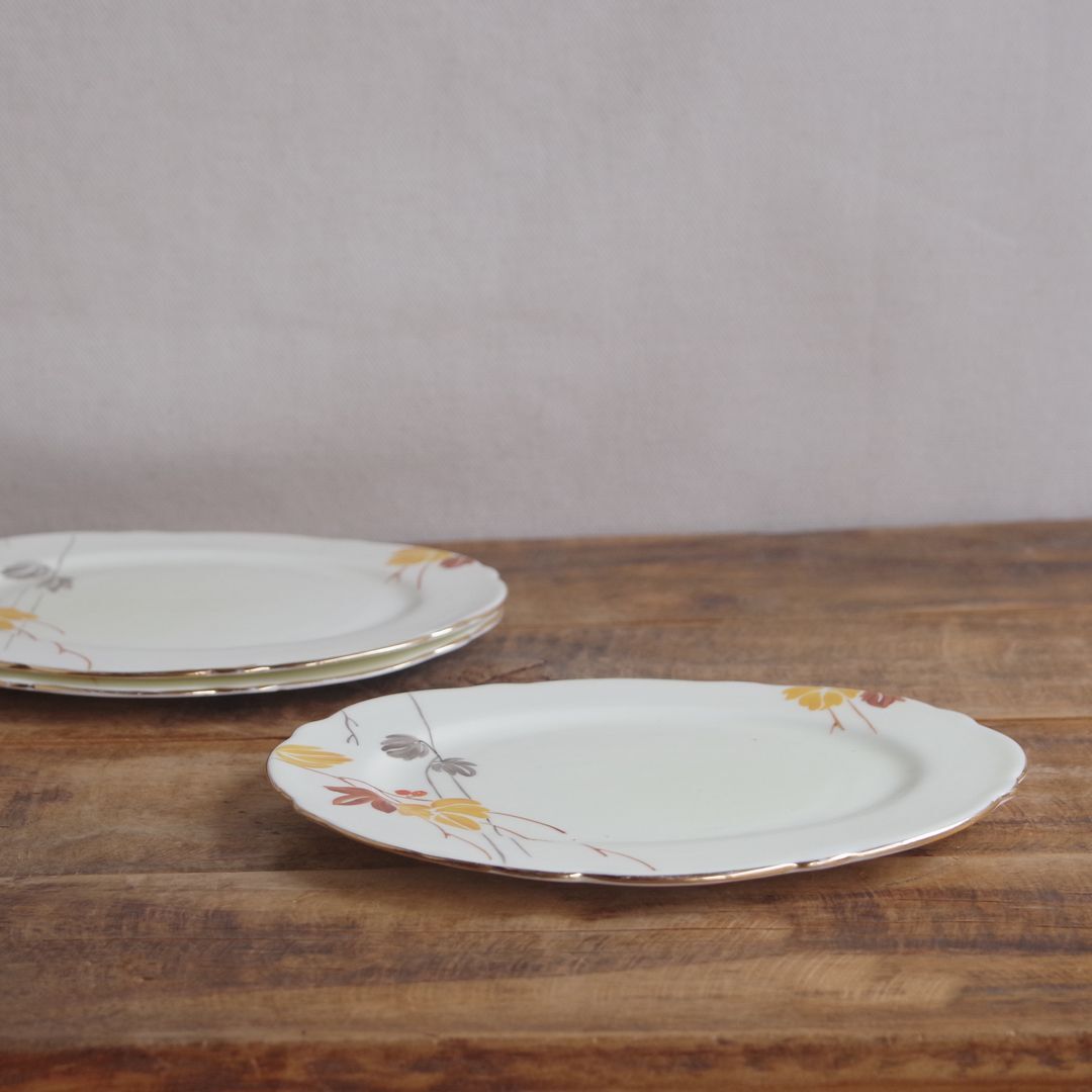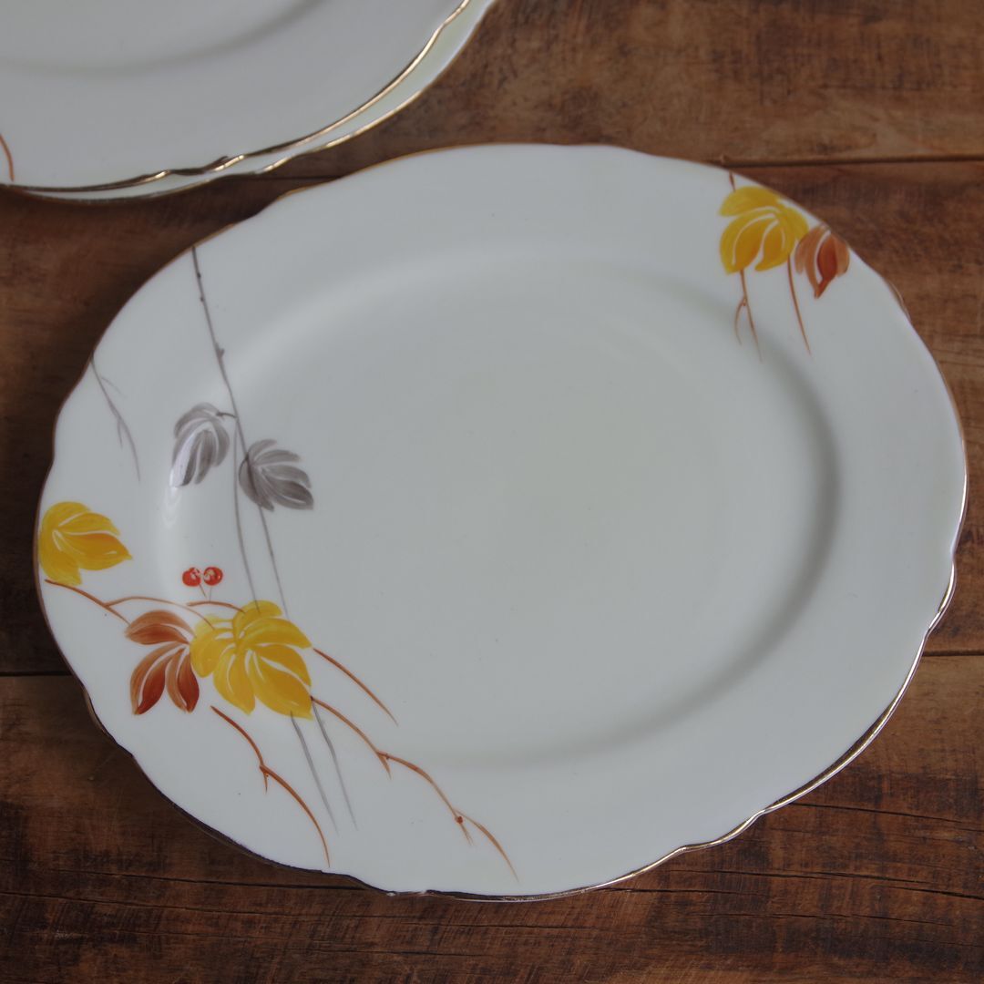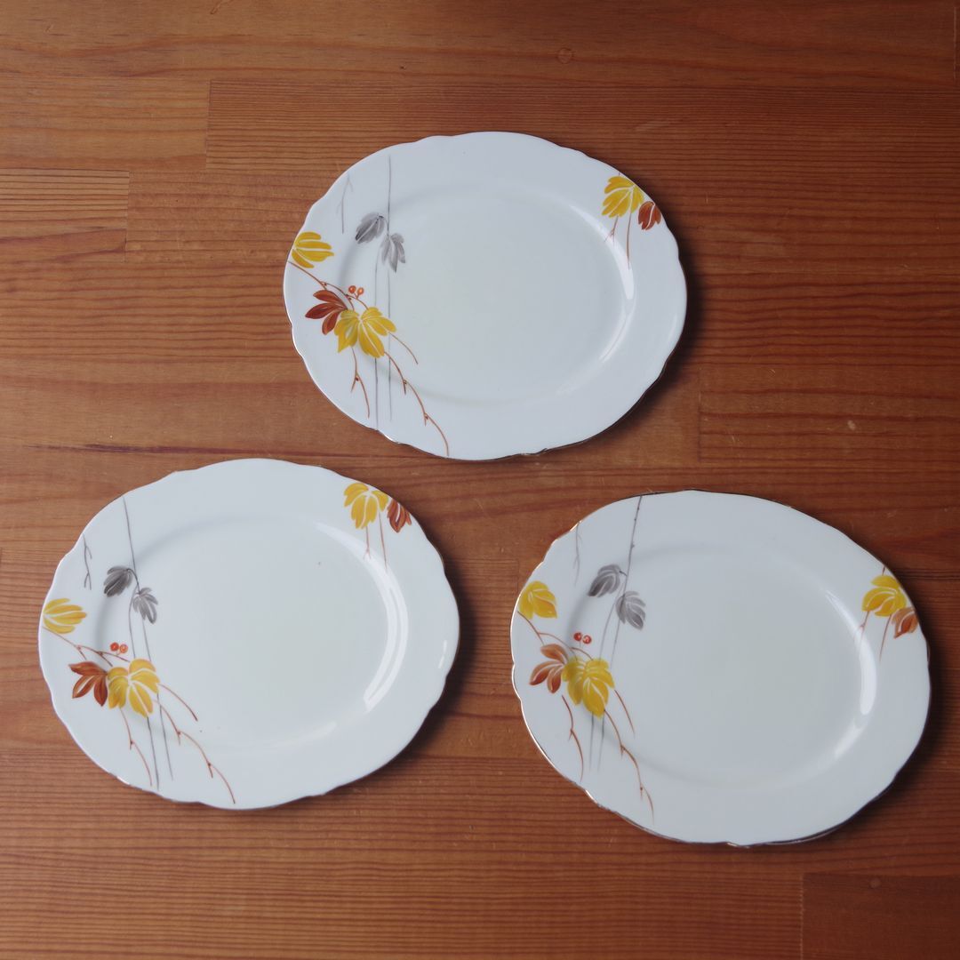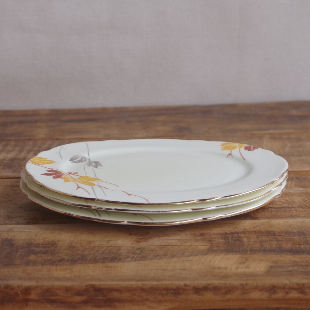 3枚セット パラゴン 蔦 デザートプレート ケーキ皿 17cm Paragon 手描き #250112 英国 ヴィンテージ 食器 陶器 レトロ アンティーク 楕円
