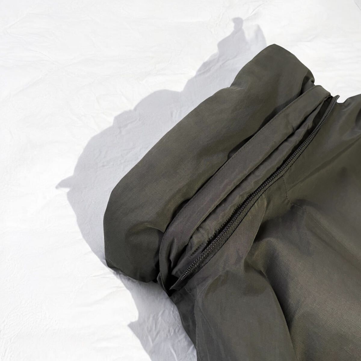 ダウンに含まれる空気の層が厚く、復元力が高い為、より暖かく、ボリューム感のある一枚。
