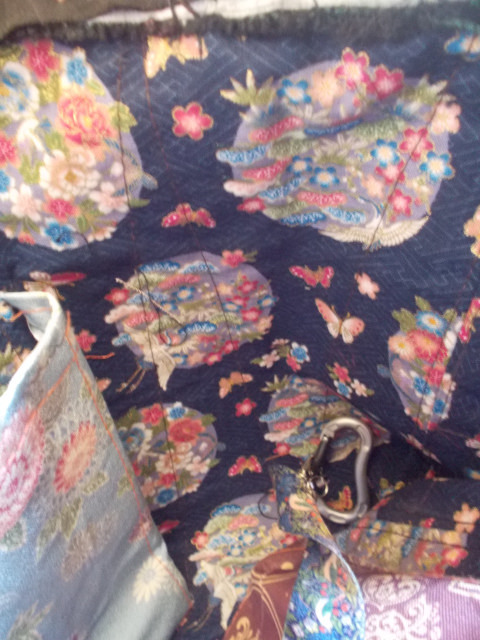 中部屋の壁は着物の生地で素敵な古風な和柄がありましたのでそれを使いました。