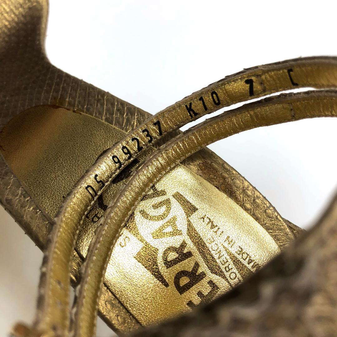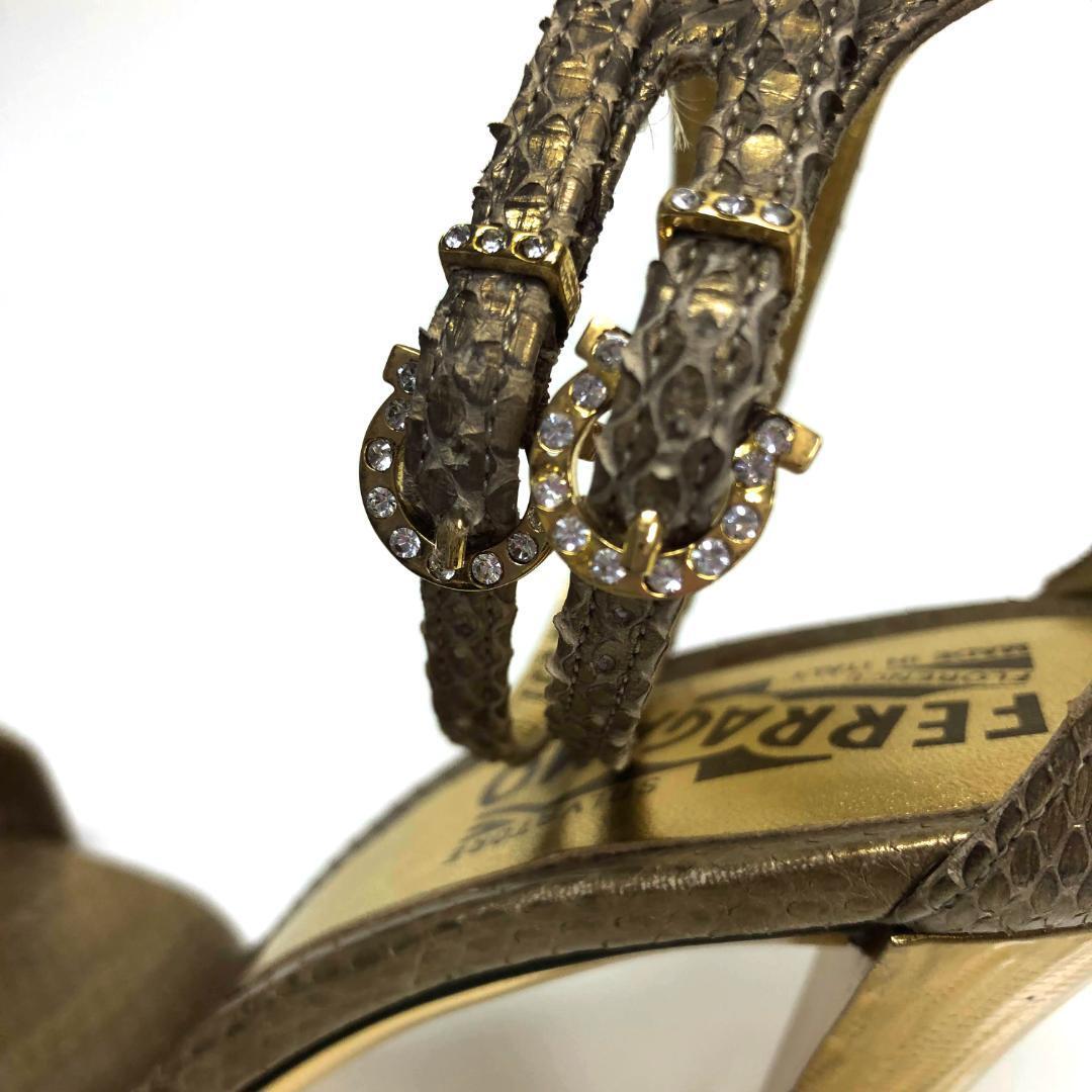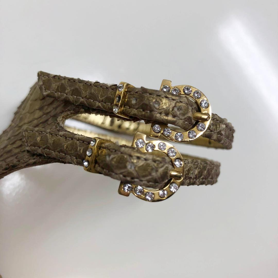 Salvatore Ferragamo サルバトーレ フェラガモ ミュール ハイヒール ヘビ革 蛇 パイソン レザー スネーク スキン ラインストーン ビジュー ゴールド ストラップ 7 23.5cm 24cm ガンチーニ金具