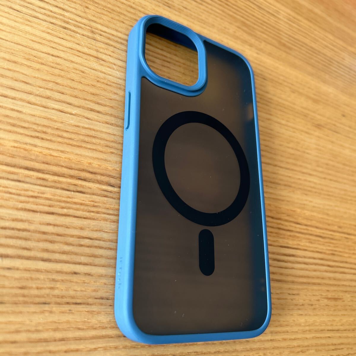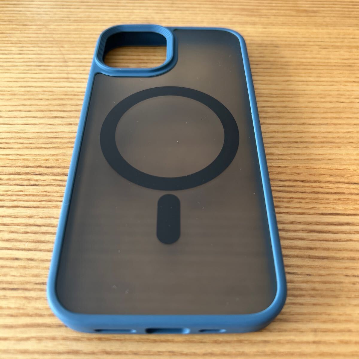 iPhone 14用 ケース マグネット ケース MagSafeに対応 半透明のマット背面 薄型 耐衝撃 カバー (ストームブルー)