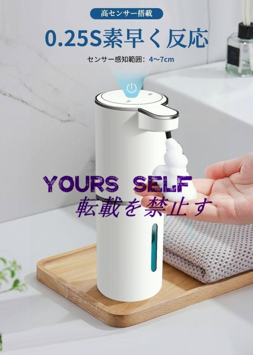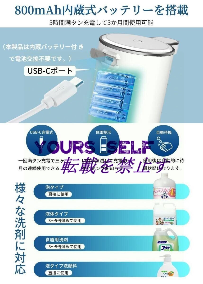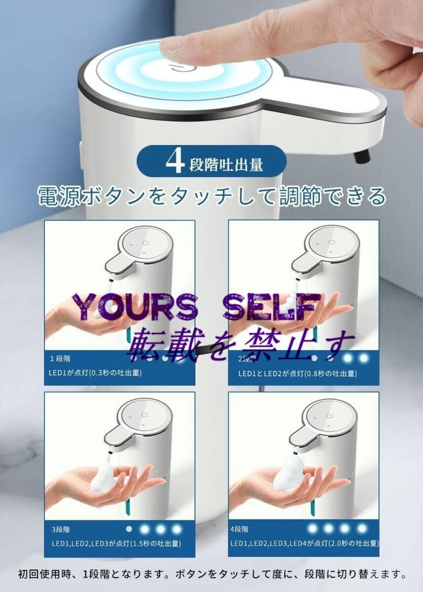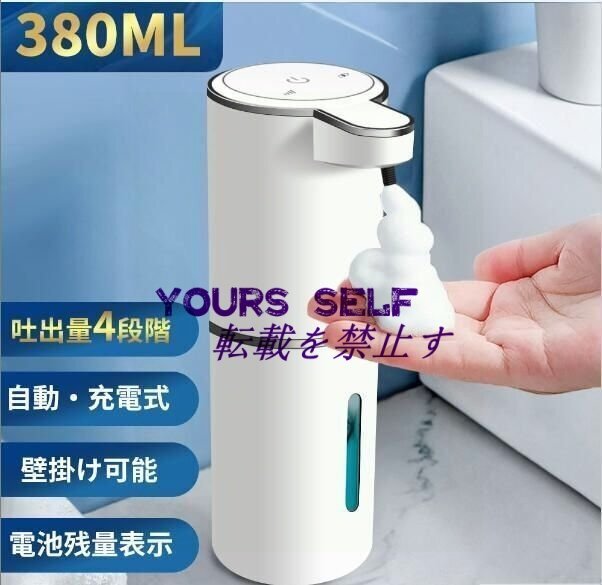 ソープディスペンサー 自動 泡 大容量380ML type-c充電式 4段階調整 オートソープディスペンサー おしゃれ 電池残量表示 IPX5防水 壁掛け