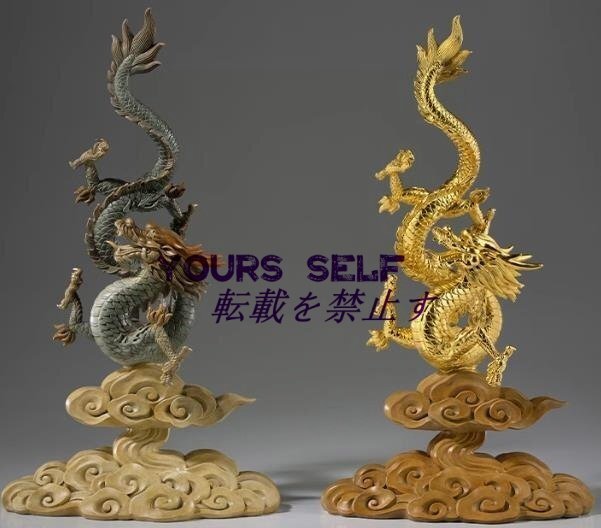 昇り龍 風水龍神 50.5cm 銅製 置物 昇運金龍 龍の置物 風水 開運 強運 干支 縁起物 商売繁盛 風水グッズ (金色)