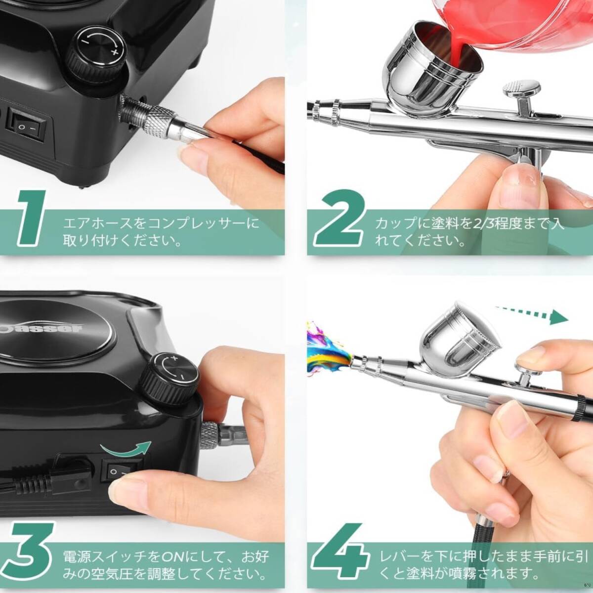 エアブラシ 三種口径 セット エアコンプレッサー コード式 無段階圧力制御 ダブルアクション 小型 ジオラマ プラモデル 送料無料 軽量