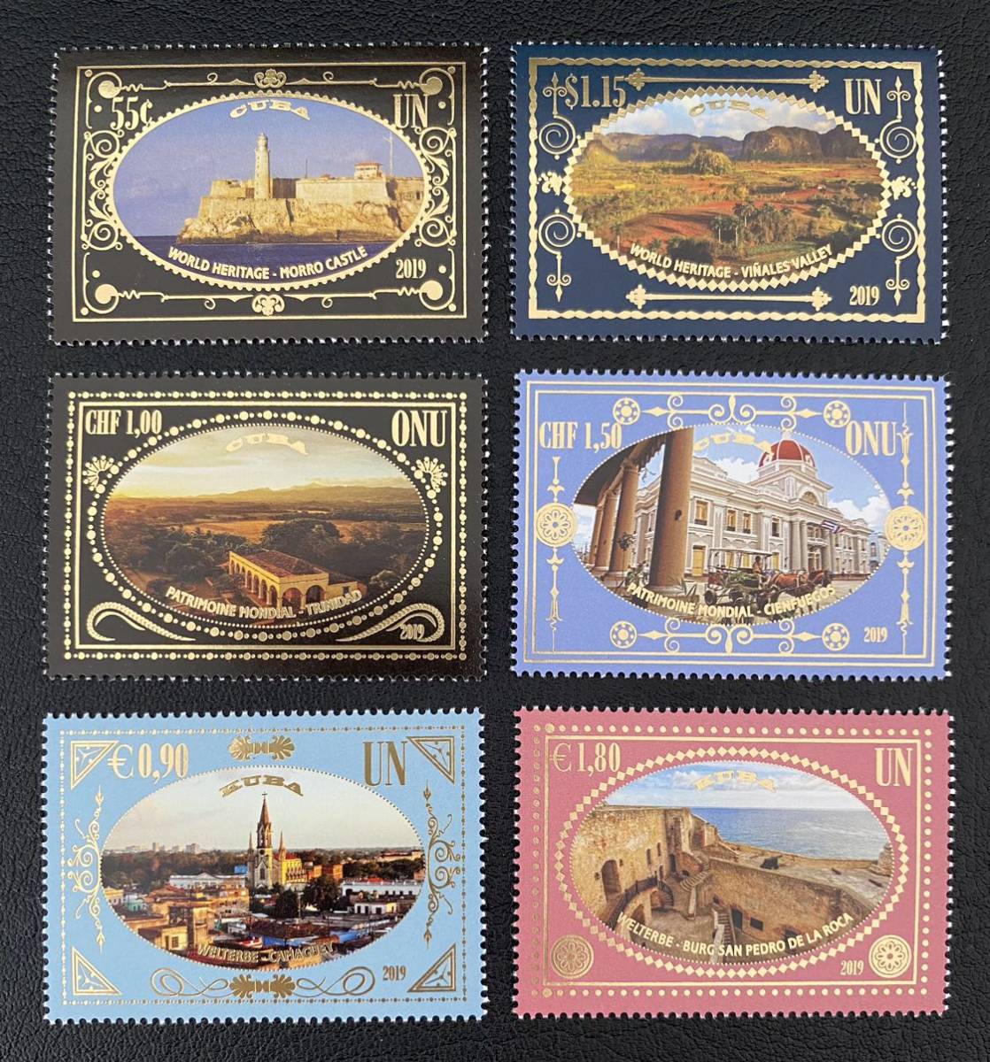 国連 オールド・ハバナとその要塞群 ビニャーレス渓谷 トリニダードとロス・インヘニオス渓谷 シエンフェゴスの都市歴史地区 カマグェイの歴史地区 サンティアゴ・デ・クーバのサン・ペドロ・デ・ラ・ロカ城」6種完 未使用 NHです。