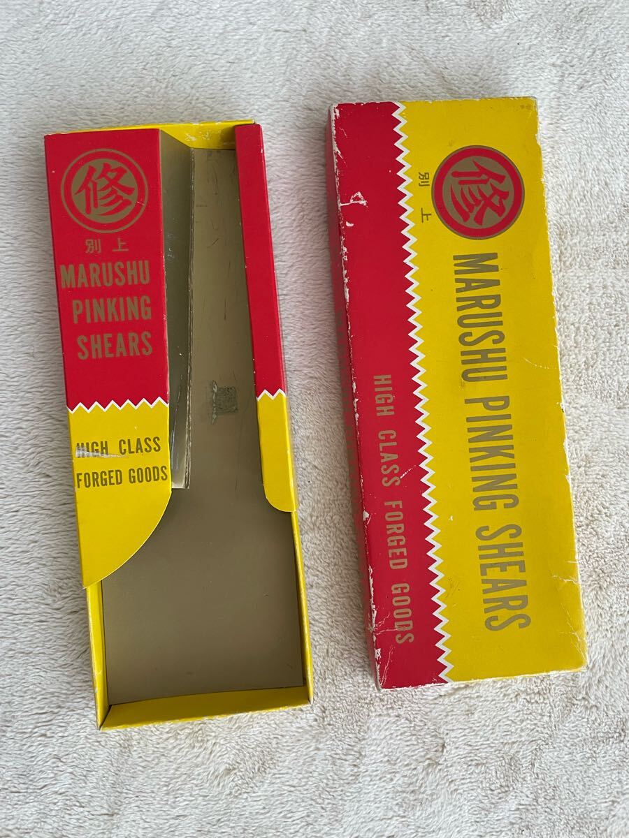 #ヴィンテージ #ピンキングシアーズ #裁ちばさみ #手芸用品 #裁縫道具 #クラフト #昭和レトロ #アンティーク #レアアイテム #ギザ刃 #日本製 #ハンドメイド #DIY #カッティング #キルト #刺繍 #レトロ雑貨 #手作り #MARUSHU #オリジナルボックス