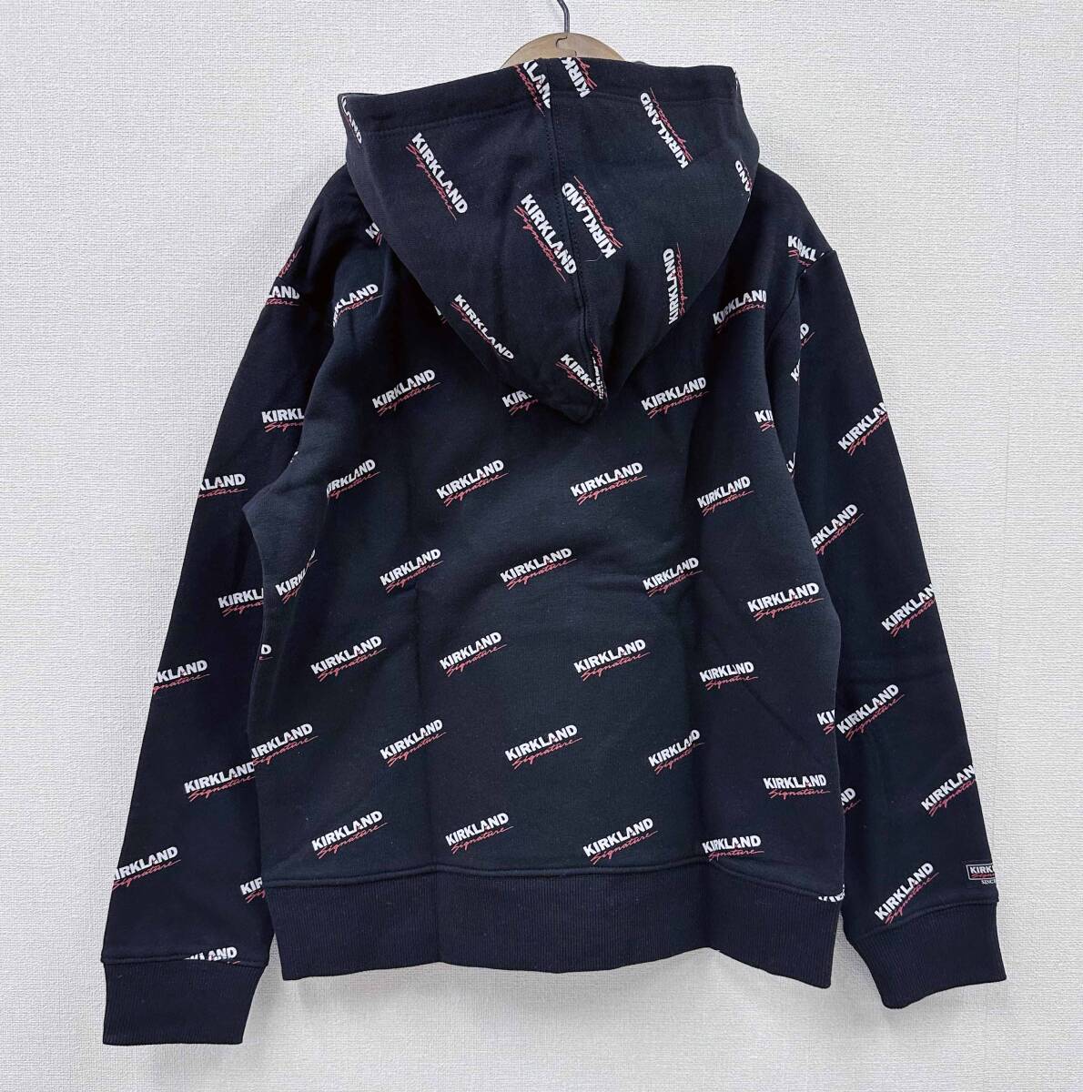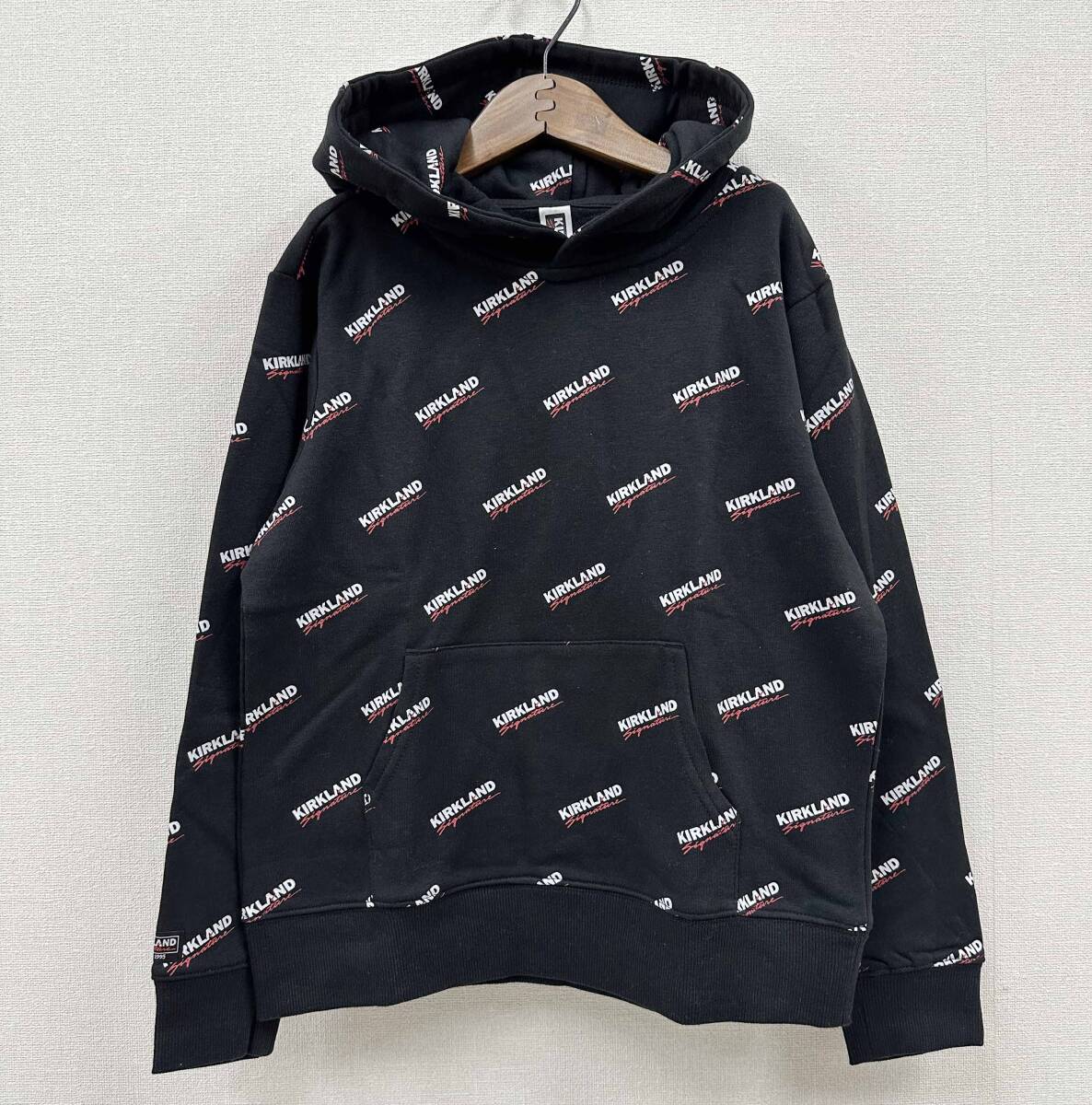 新品 150~160 ★ コストコ カークランドシグネチャー ロゴ フーディ 裏起毛 ブラック