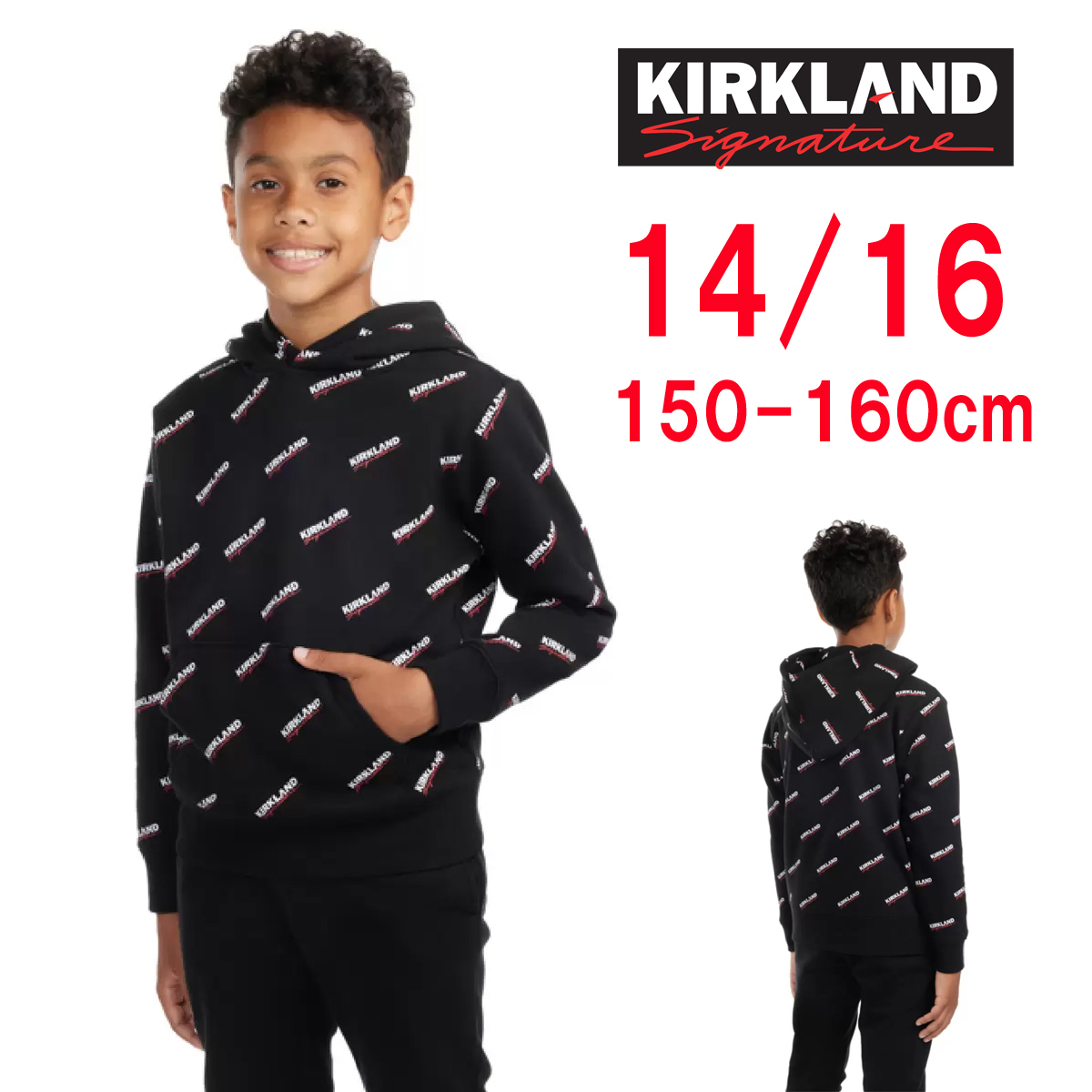 新品 150~160 ★ コストコ カークランドシグネチャー ロゴ フーディ 裏起毛 ブラック 14/16 150cm 160cm パーカー フード付き トレーナー