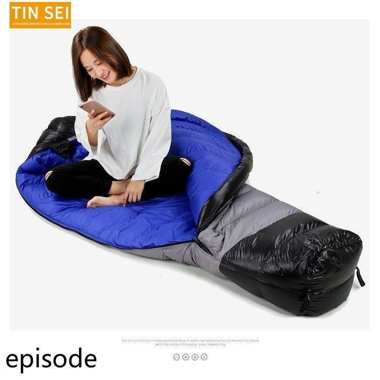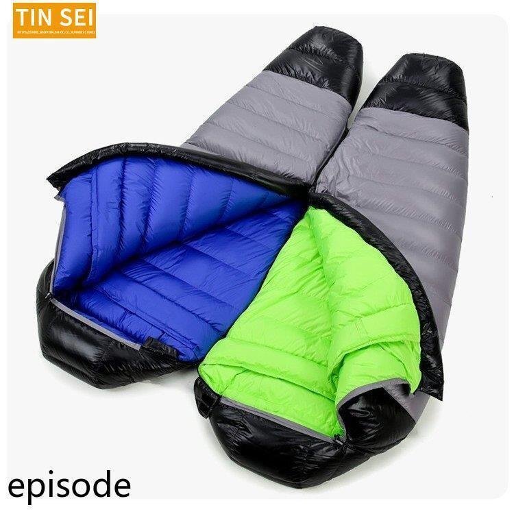 マミー型寝袋 連結可能 ダークダウン 寝袋 春夏秋冬 シュラフ 洗える 軽量 コンパクト アウトドア キャンプ 車中泊 ブルー600gダウン