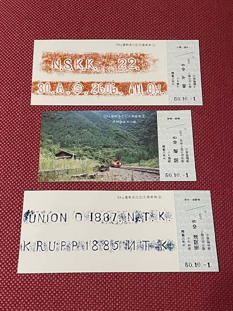 大井川鉄道 50kg重軌条化記念乗車券 昭和50年 乗車券5枚・入場券1枚 (管理番号96-13)