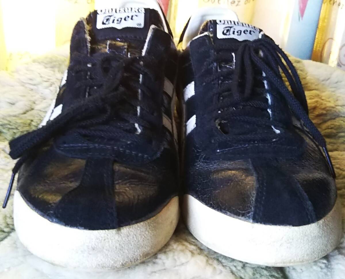 即決・送料込★希少★Onitsuka Tiger オニツカタイガー★難あり・スエードxクラックレザー本革 スニーカー THL508★黒x白 US9(27cm) ヴィンテージ